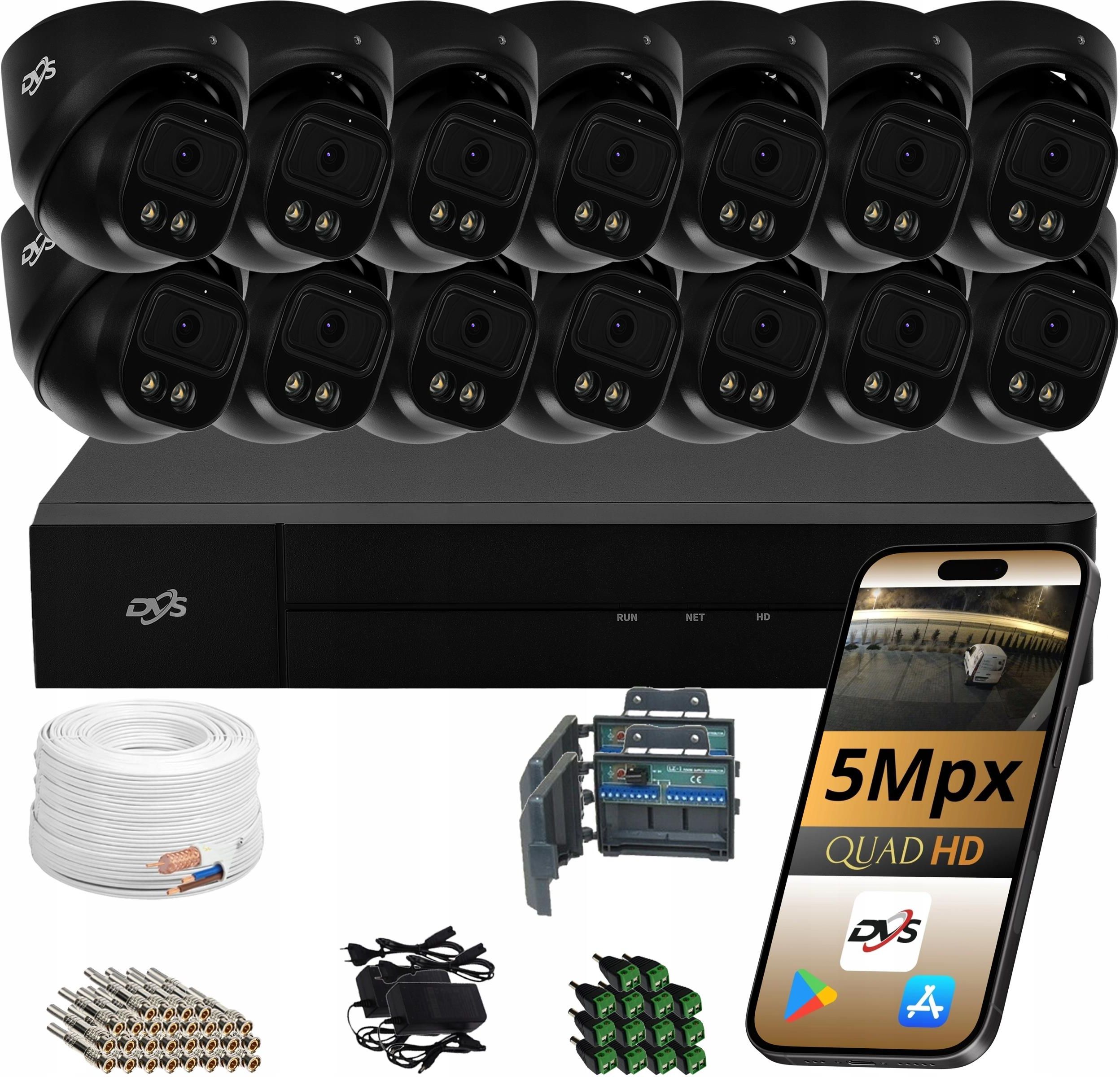 • ZESTAW 14 KAMER KOPUŁKA CZARNA ZEWNĘTRZNA 5MPX DVS