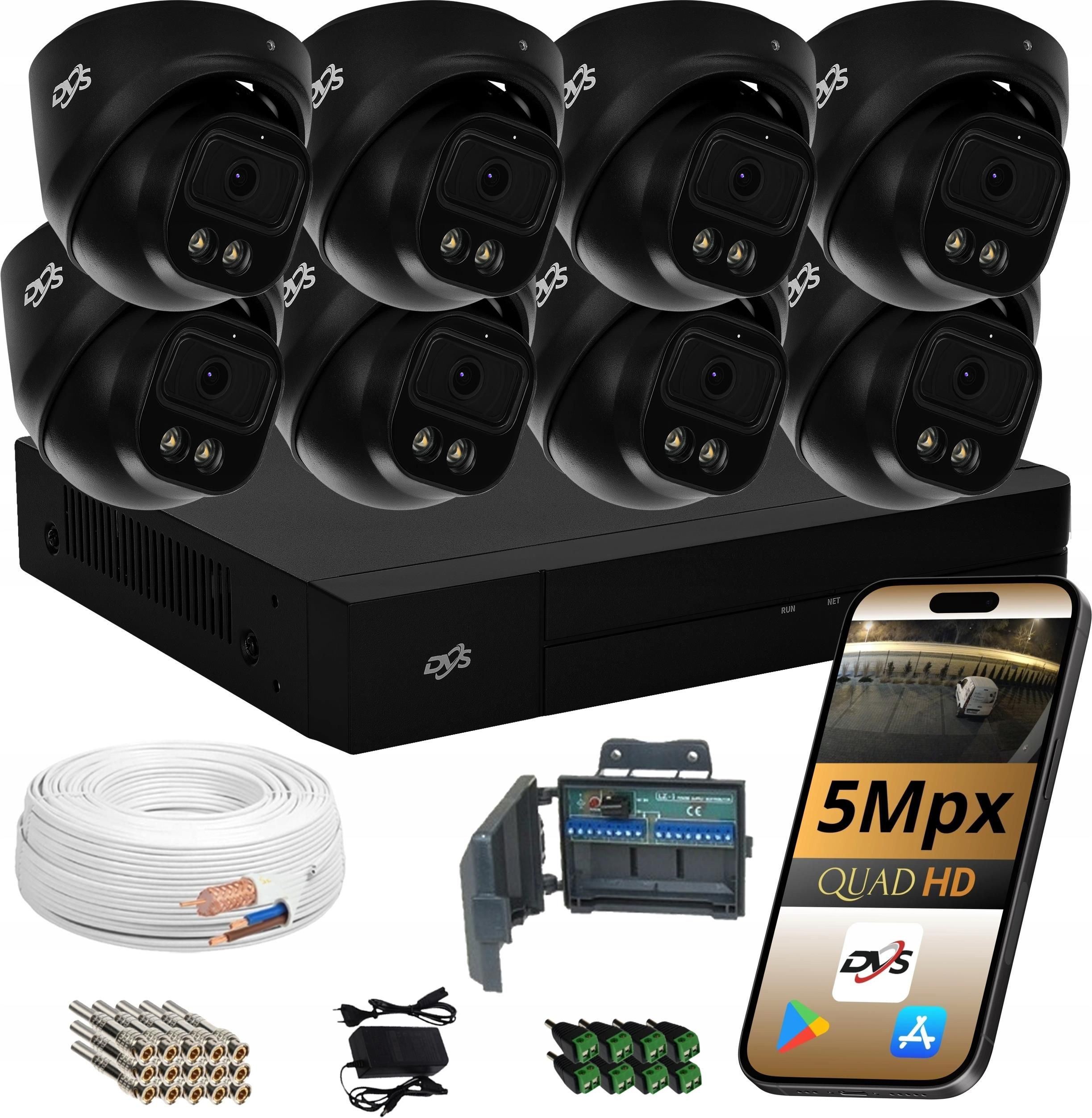 • ZEWNĘTRZNY ZESTAW KOPULKA 8 KAMER DVS CZARNA 5MPX