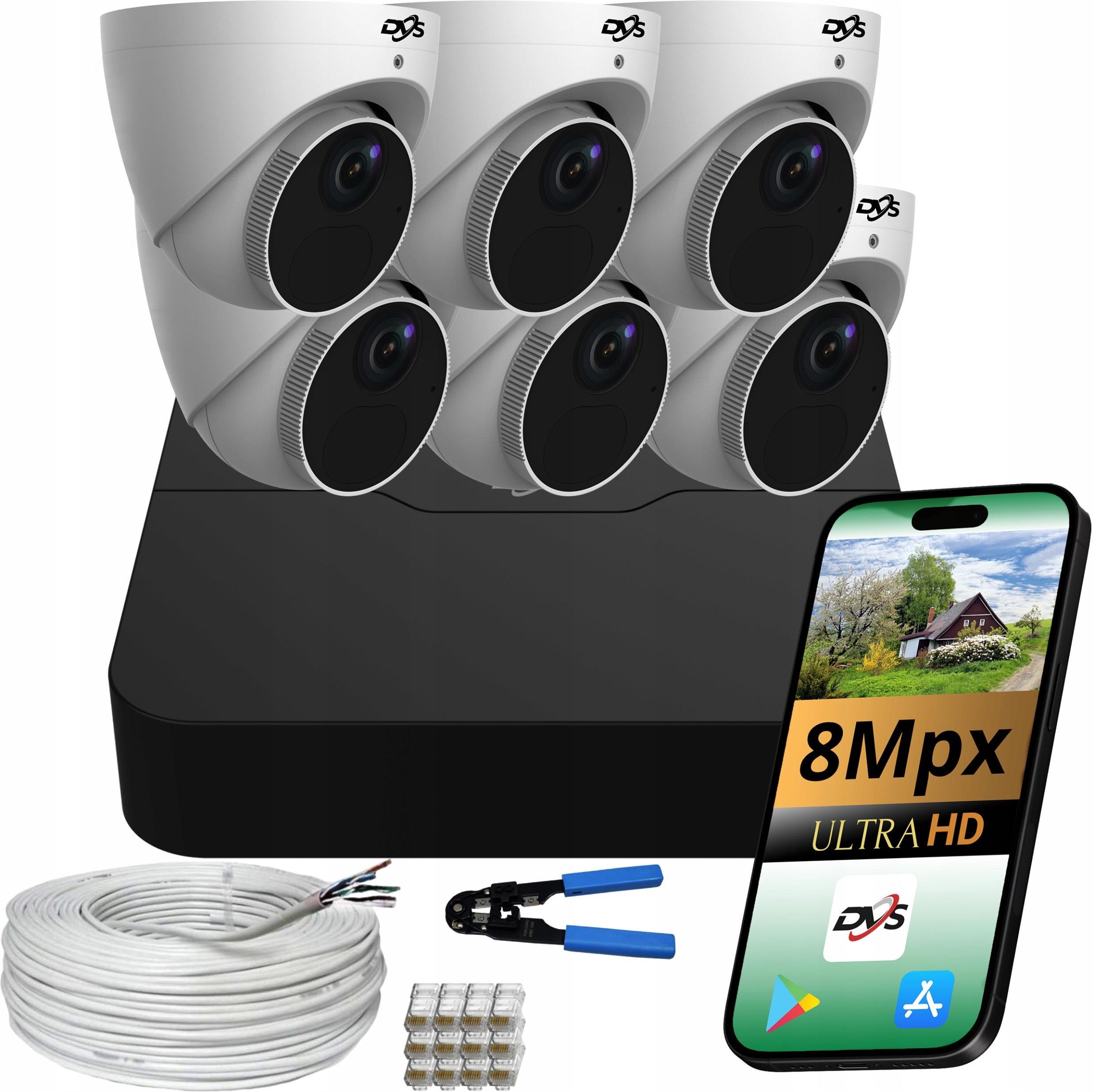 Dvs Zestaw Kamer Do Monitoringu 6 Zewnętrznych Ip Poe Kopułkowych 4K 8Mpx Zielonka
