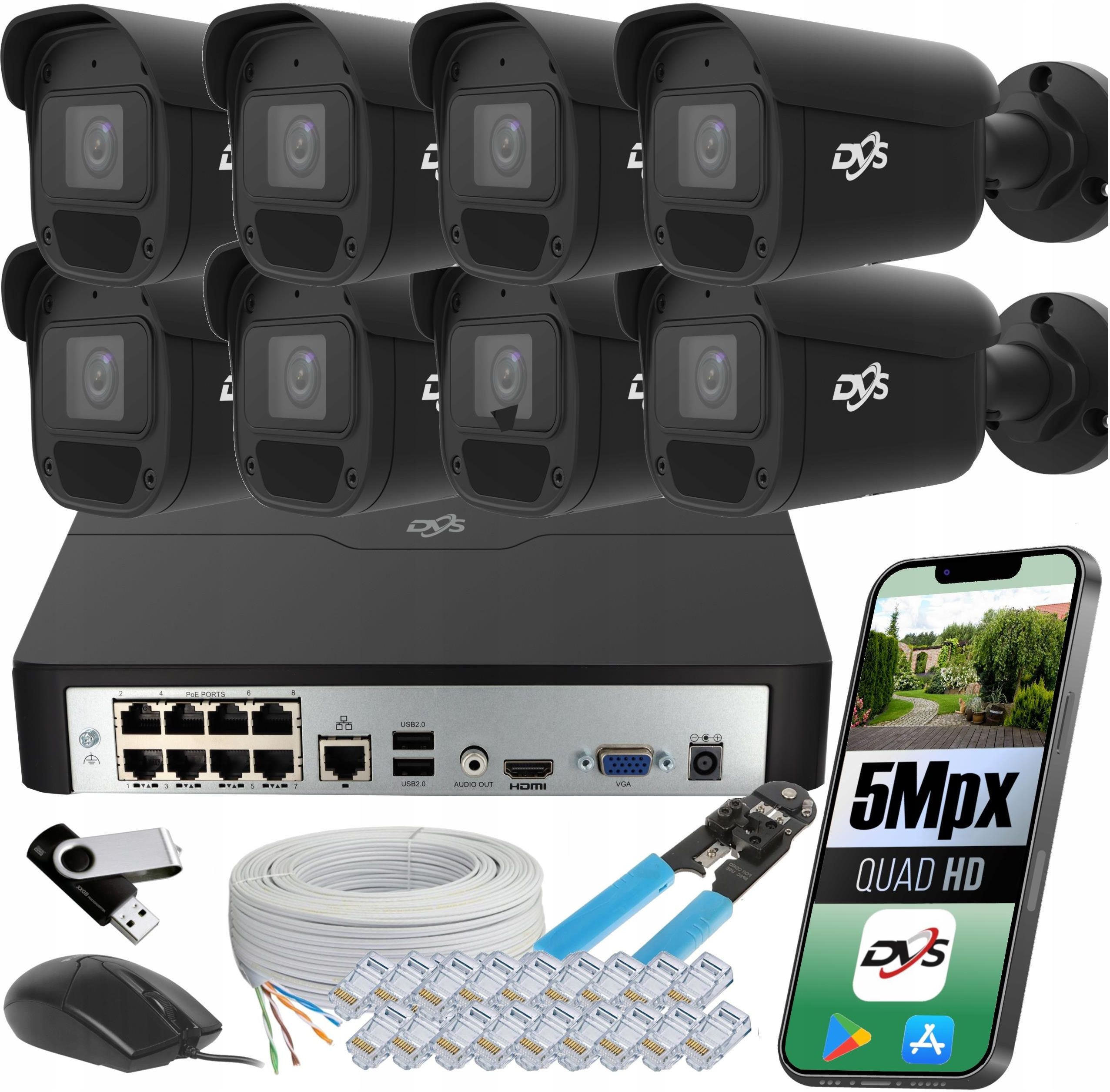 Dvs Zestaw Kamer Do Monitoringu 8 Zewnętrznych Kamer Czarnych Tubowych 5Mpx Zielonka