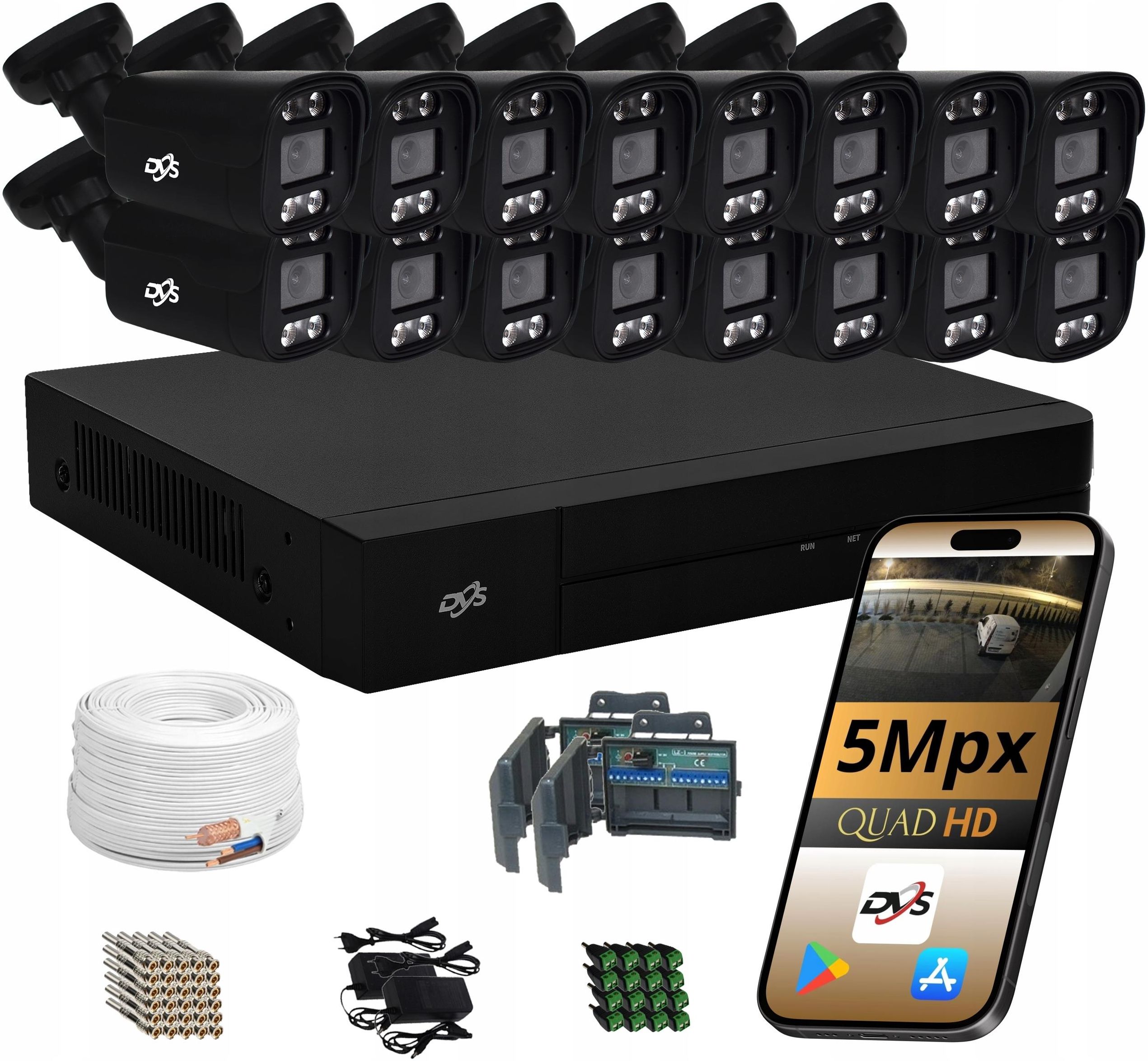 • ZESTAW 16 KAMER CZARNYCH ZEWNETRZNA TUBA 5MPX DVS