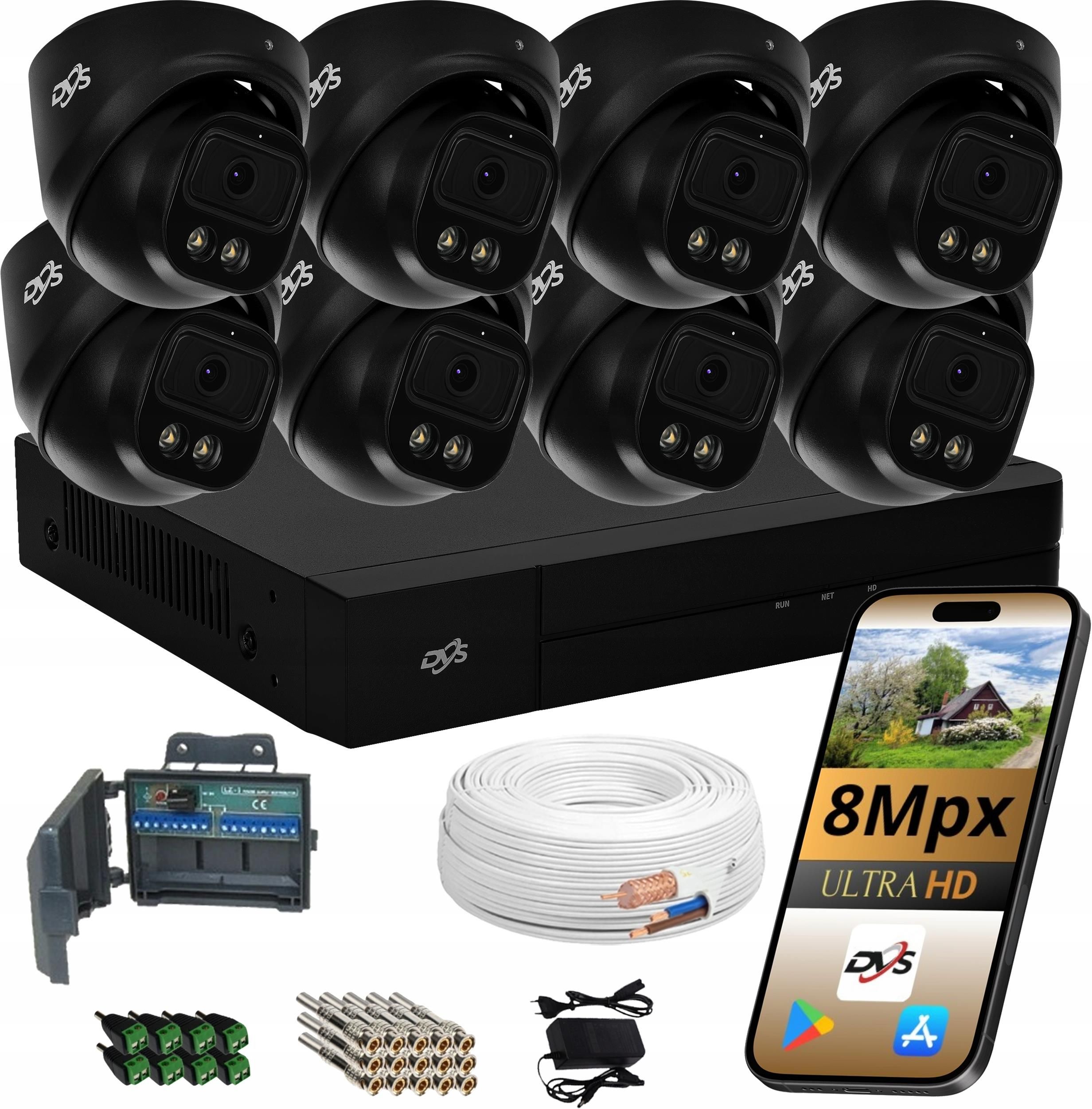 • ZESTAW 8 ZEWNĘTRZNYCH KAMER 8MP CZARNA KOPUŁKA DVS