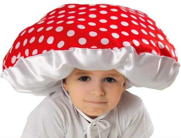 zabawny muchomorek, troczki utrzymują czapę na głowie