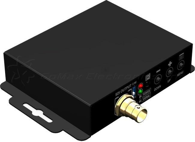 Konwerter VGA na SDI ze skalerem. Mozliwość regulacji parametrów obrazu. Max. rozdzielczość wyjściowa 1080p 60 Hz. Sterowanie piloterm IR lub przez PC
