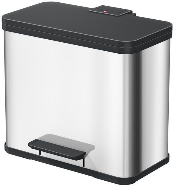 HAILO Öko duo Plus L Kosz na odpady z pedalem Kosz na odpady z pedałem i dwoma pojemnikami wewnętrznymi o różnych rozmiarach. Numer artykułu: 0630-200 GTIN (EAN): 4007126016171 - Mechanizm cichego zamykania pokrywy (soft close) - 2 wyjmowane pojemniki wewnętrzne w 100% z tworzywa sztucznego z recyklingu - Ergonomicznie szeroki pedał z tworzywa w kolorze czarnym - Wewnętrzny mechanizm pedału - Pokrywa z czarnego tworzywa - Prostokątna obudowa ze stali szlachetnej lub antykoryzyjnej, powlekanej blachy stalowej