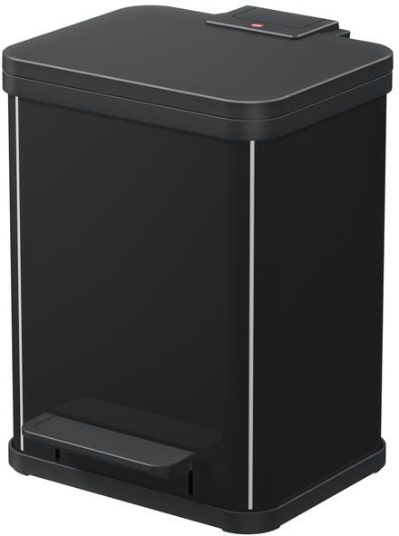 HAILO Öko uno Plus M Kosz na odpady z pedalem Solidny pojemnik pedałowy z dużym otworem. Numer artykułu: 0619-260 GTIN (EAN): 4007126016348 - Mechanizm cichego zamykania pokrywy (soft close) - Ergonomiczny, szeroki pedał w kolorze czarnym - Wewnętrzny mechanizm pedału - Pojemnik wewnętrzny w 100% z tworzywa sztucznego z recyklingu - Pokrywa z czarnego tworzywa - Prostokątna obudowa ze stali szlachetnej lub antykoryzyjnej, powlekanej blachy stalowej