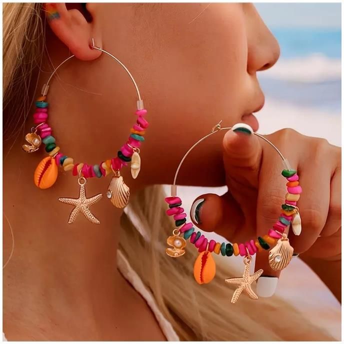 Eleganckie kolczyki w formie dużych kół, które doskonale oddają urok morskiej scenerii. Wykonane z wysokiej jakości materiałów, ozdobione kolorowymi kamyczkami i muszelkami, są idealnym dodatkiem na letnie dni oraz wieczorne wyjścia. Te efektowne kolczyki w złotym kolorze przyciągają wzrok i dodają blasku każdej stylizacji. Dzięki swojemu unikalnemu designowi świetnie sprawdzą się zarówno na plaży, jak i podczas specjalnych okazji. Wzbogać swoją biżuterię o te wyjątkowe kolczyki i podkreśl swoją indywidualność.