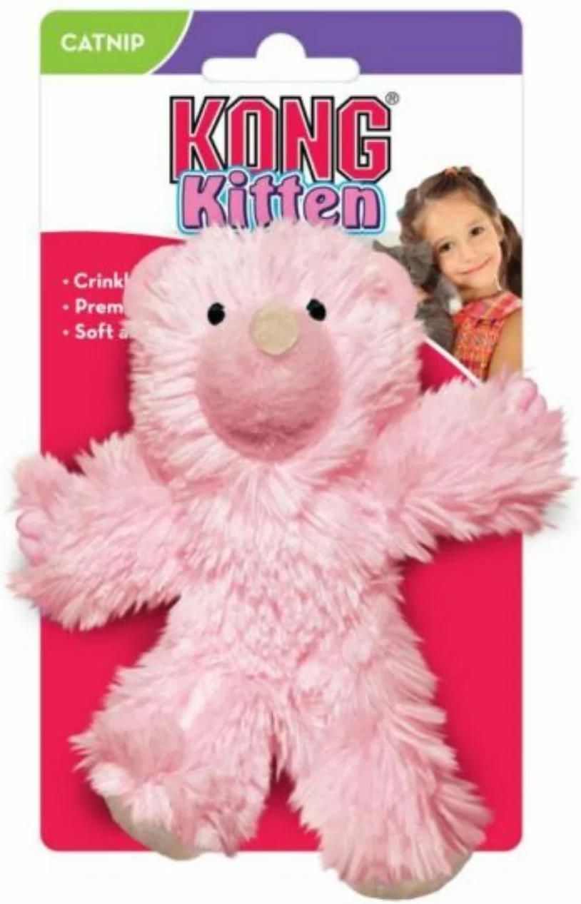 Kong Cat Toys Teddy Bear Kong Kitten Teddy Bear to pluszowy miś dla kociąt. Rozmiar misia został dostosowany do wielkości kociąt, dzięki czemu zapewnia komfort zabawy. Kocięta swobodnie mogą bawić się w polowanie, ściganie i łapanie. Dodatek kocimiętki przedłuża zabawę, a miękki i wytrzymały materiał zapewnia trwałość. Kolor zależny od partii towaru.