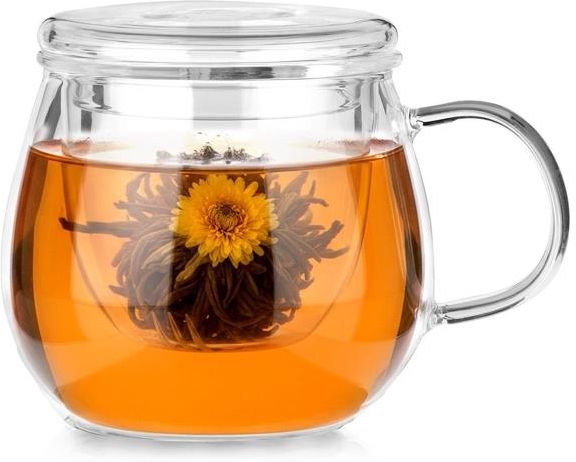 Szklany kubek z zaparzaczem i pokrywką. Kubek ma pojemność 400 ml. Idealny do parzenia herbaty liściastej, ziół oraz naparów. Szklany kubek z zaparzaczem o pojemności 400 ml - Praktyczny kubek do parzenia herbaty liściastej, ziół oraz naparów. Pozwala wygodnie przygotować ulubiony napój bez fusów. …