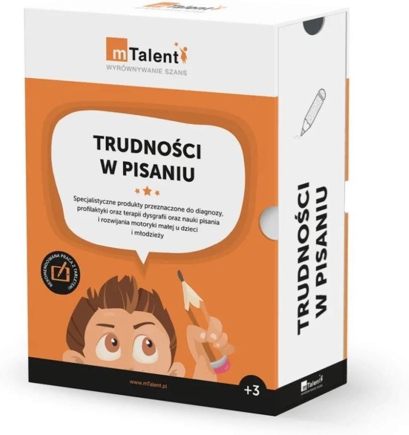 Specjalne potrzeby edukacyjne. mTalent Seria programów mTalent została zaprojektowana w celu wspomagania współczesnego terapeuty i nauczyciela w pracy z dziećmi ze specjalnymi potrzebami edukacyjnymi i rozwojowymi. Programy z serii mTalent to gotowe narzędzia diagnostyczno-terapeutyczne zawierające tysiące interaktywnych ćwiczeń, które z łatwością mogą zostać włączone w program zajęć dydaktyczno-wyrównawczych, rewalidacyjnych, logopedycznych i korekcyjno-kompensacyjnych. mTalent to stale rozwijająca się seria specjalistycznych programów i ćwiczeń wspierających terapię. Od momentu ich powstania baza ćwiczeń każdego programu jest stale powiększana, a co roku seria wzbogacana jest o kolejne pozycje, które odpowiadają na wszystkie potrzeby terapeutów, nauczycieli i ich podopiecznych. Wszystkie programy mTalent dostępne są na zasadzie licencji bezterminowej! Każdy program mTalent dostępny jest w programie dofinansowania Aktywna Tablica 2020-2024! Indywidualizacja i wybór mTalent to najnowsza i najbogatsza na polskim rynku seria programów wspierających terapię. W sumie oferuje ponad 22 tysiące interaktywnych ekranów! Największe doświadczenie na rynku Nad serią mTalent pracuje zespół, który jako pierwszy w Polsce wprowadził technologię do gabinetów logopedycznych i terapeutycznych. Udowodniona skuteczność Wartość merytoryczna programów serii mTalent, ich efektywność, niezawodność i przewagi konkurencyjne zostały potwierdzone w opiniach klinicznych. Najczęściej nagradzana seria mTalent to jedyny polski program wspierający terapię, który otrzymał nagrodę BELMA. mTalent to także jedyne multimedialne rozwiązania nominowane do Bett Awards i konkursu ERA. Status wyrobu medycznego Multimedialne programy mTalent uzyskały status wyrobu medycznego oraz pozytywną ocenę kliniczną, co gwarantuje ich skuteczność oraz bezpieczeństwo Bezterminowa licencja Wydawca serii mTalent udziela bezterminowej i wielostanowiskowej licencji na wszystkie produkty z tej serii. Co więcej, użytkownicy otrzymują także bezpłatne aktualizacje programów i materiały szkoleniowe. Trudności w pisaniu Specjalistyczny produkt przeznaczony do diagnozy, profilaktyki i terapii dysgrafii oraz nauki pisania i rozwijania motoryki małej Do wykorzystania na zajęciach korekcyjno-kompensacyjnych, rewalidacyjnych i dydaktyczno-wyrównawczych z dziećmi ze specyficznymi trudnościami w uczeniu się (w tym z symptomami dysgrafii i/lub obniżonym napięciem mięśniowym) oraz jako narzędzie profilaktyczne przygotowujące dzieci do nauki pisania, wspomagające tradycyjną naukę pisania liter. Ponad 1200 ekranów interaktywnych, prawie 100 kart pracy, przewodnik metodyczny oraz zestaw materiałów dodatkowych w jednym pudełku. Dla terapeutów pedagogicznych i nauczycieli zajmujących się wspomaganiem sprawności w zakresie motoryki i umiejętności pisania. Zawartość programu mTalent. Trudności w pisaniu Aż trzy publikacje! (w tym 200-stronicowy poradnik metodyczny do programu i instrukcja tworzenia własnych zasobów) Ponad 1200 ekranów interaktywnych i prawie 100 kart pracy do wydruku Zestaw tradycyjnych materiałów edukacyjnych uzupełniających multimedialne ćwiczenia Bezpłatne szkolenie zakończone wystawieniem certyfikatu Dostęp do centrum wsparcia technicznego i szkoleniowego mTalent Bezpłatne aktualizacje programu MTalent. Trudności w pisaniu to innowacyjny, a jednocześnie prosty w użyciu zestaw kształtujący poprawne nawyki w zakresie kreślenia odręcznego, a także przygotowujący rękę do trudnej, ale niezbędnej sztuki pisania atrakcyjne dla dziecka wspomaganie zajęć terapeutycznych, np. terapii ręki, jeśli trudności w pisaniu zostaną zdiagnozowane, baza blisko 1000 ekranów z ćwiczeniami interaktywnymi na tablicę interaktywną, komputer z monitorem dotykowym lub tablet [1], zestaw ćwiczeń z mikro- i makromotoryki (np. specjalnie zaprojektowane ćwiczenia rozmachowe na tablicę interaktywną), wspomagające rozwój wielu innych (poza umiejętnością pisania) obszarów, przydatnych w późniejszym życiu uczniów (np. mowa, precyzja, propriocepcja, koordynacja ogólna, stabilizacja całego ciała (mięśnie posturowe) i inne), największy na rynku zestaw ćwiczeń uwzględniających wiele umiejętności potrzebnych w trakcie nauki pisania, przed nią, jak i w przypadku niepowodzeń, dostosowany przez specjalistę materiał do pracy z 4 zróżnicowanymi pod względem wieku, rozwoju i możliwości grupami (są tu zadania dla: trzylatków, czterolatków, pięciolatków oraz ostatnie dla grupy dzieci 6/7 letnich), technologia wspomagająca intuicję, np.: automatyczna kontrola prawidłowego kierunku, kształtu, kolejności kreślenia w przypadku liter, kontrola liczby przeciętych konturów i pominiętych punktów i inne, pomoc w diagnozie wstępnej (badanie sprawności grafomotorycznej) i diagnozie kontrolnej, podręcznik metodyczny napisany przez specjalistę trudności w pisaniu i wieloletniego członka Zarządu Głównego Polskiego Towarzystwa Dysleksji (Autor: Małgorzata Rożyńska). [1] Wymienione urządzenia nie są elementem zestawu. mTalent. Trudności w pisaniu składa się z następujących działów: Kwestionariusze: ocena wstępna i ryzyko dysleksji Kwestionariusze i diagnoza pedagogiczna: 3-latki Kwestionariusze i diagnoza pedagogiczna: 4-latki Kwestionariusze i diagnoza pedagogiczna: 5-latki Kwestionariusze i diagnoza pedagogiczna: 6-latki Terapia – ćwiczenia interaktywne: Poziom 1 Terapia – ćwiczenia interaktywne: Poziom 2 Terapia – ćwiczenia interaktywne: Poziom 3 Terapia – ćwiczenia interaktywne: Poziom 4 (Litery) Terapia – ćwiczenia interaktywne: Poziom 4 (Litery – dwuznaki)