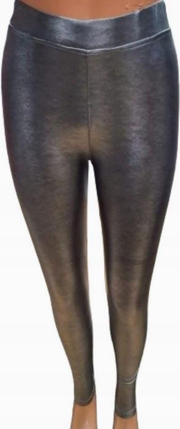 LEGGINSY EKO SKÓRA spodnie srebrne szare długie imitacja skóry S Zielonka