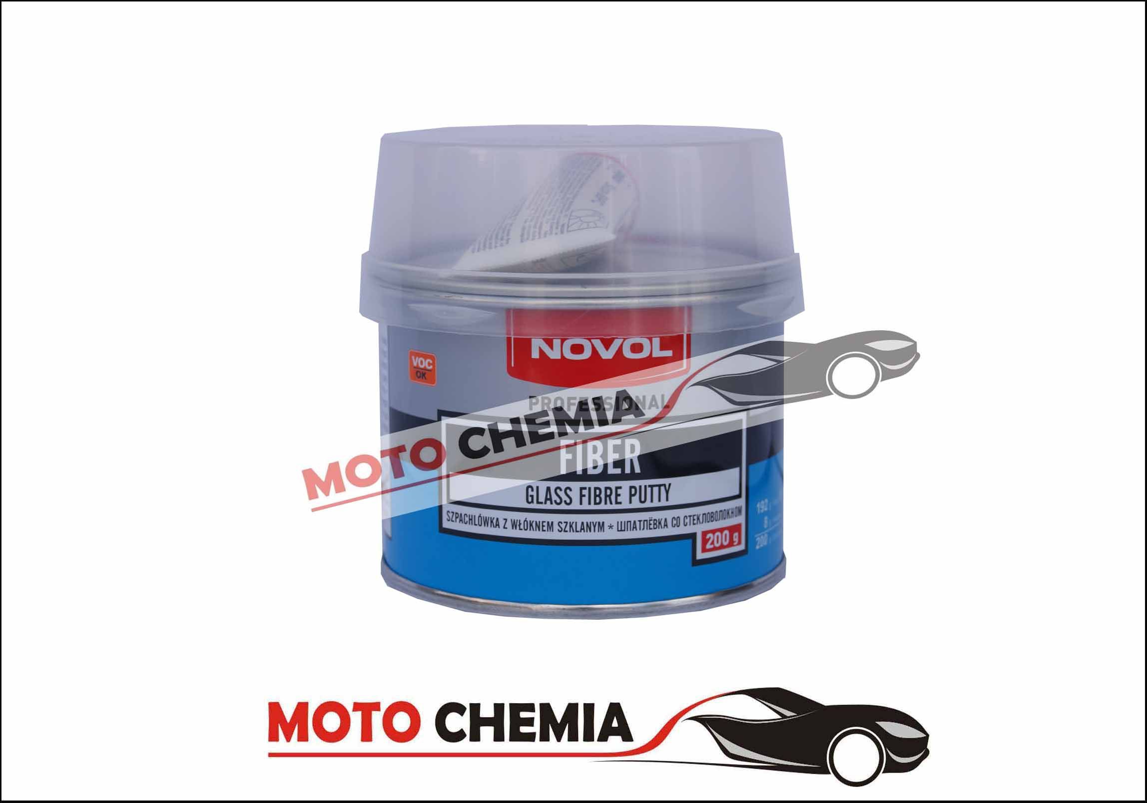 SZPACHLÓWKA SAMOCHODOWA Z WŁÓKNEM SZKLANYM NOVOL FIBER 200 G Pojemność 200 g + Utwardzacz Głównie do obróbki mechanicznej Wzmocniona włóknem szklanym Zalecana do niedużych powierzchni Czas schnięcia 20 - 30 min. temp. 20 °C Duża wytrzymałość mechaniczna NOVOL FIBER wypełniająca szpachlówka …