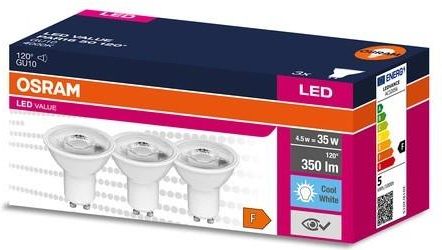 Osram - Żarówka Led Value Par16 35 120° 4.5W/4000K Gu10 Trójpak 4058075497566 Zielonka