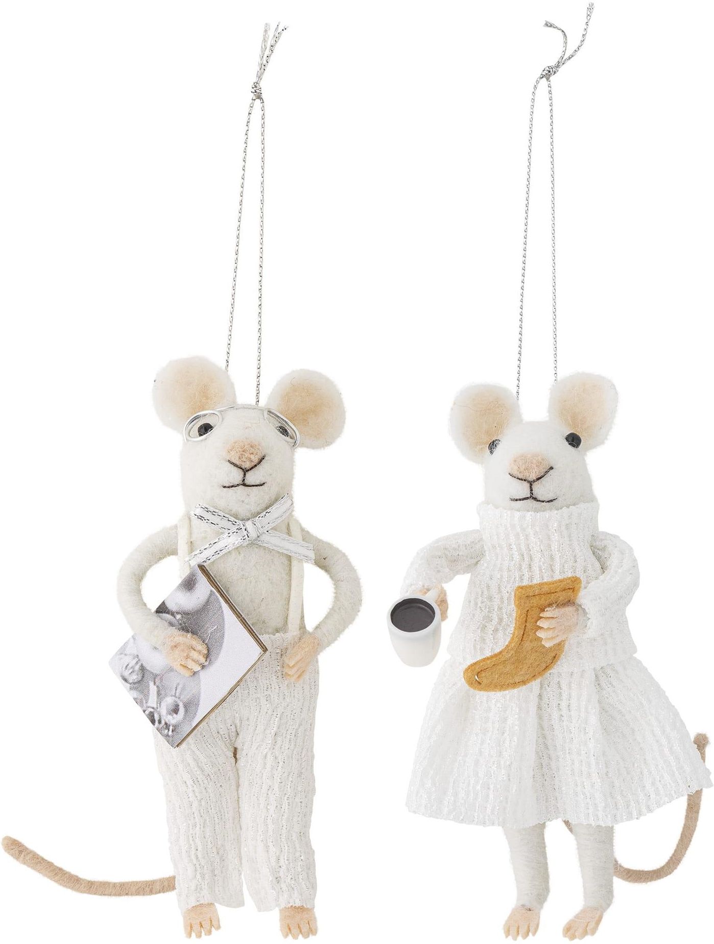 Ozdoba Peo od Bloomingville to wyrafinowany i urokliwy dodatek do twojej choinki. Te urocze myszy, ubrane w swoje najlepsze zimowe ubrania, wnoszą odrobinę przytulności i osobowości do twojej świątecznej dekoracji. Promieniują radością i świątecznym duchem, zarówno wisząc na gałęziach choinki, jak i pełniąc rolę serdecznej dekoracji na prezentach bożonarodzeniowych. Co roku dodawaj nową mysz do kolekcji i obserwuj, jak rośnie twoja rodzina ozdób świątecznych. 9xH13x5 cm, zestaw 2 szt.
