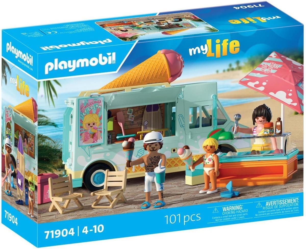 My Life to ciesząca się niesłabnącą popularnością wśród dzieci seria zestawów Playmobil o tematyce związanej z codziennym życiem. Ogromna paleta zestawów odzwierciedla miejsca, budynki, ich wyposażenie oraz otaczającą je przyrodę dając nieograniczone możliwości zabawy i tworzenia własnych historii wraz z różnorodną kolekcją figurek zwierząt i postaci Playmobil. A takie tematy jak: szkoła, przedszkole, ogród zoologiczny, wesołe miasteczko czy szalone zakupy z pewnością wzbudzą zachwyt i wywołają uśmiech na dziecięcych twarzach. Letnia zabawa na kółkach! Zestaw PLAYMOBIL Lodziarnia z wypożyczalnią sprzętu plażowego to słodkie przysmaki i wodne przygody w jednym. Z retro designem, zdejmowanym dachem, otwieraną klapą boczną i obracanym szyldem – ten samochód kryje mnóstwo niespodzianek! Dzieci mogą nabierać lody i serwować je klientom, a potem zamienić auto w wypożyczalnię desek surfingowych i masek do nurkowania. Wnętrze kryje ladę, uchwyty na rożki i półki na sprzęt. Czy to pod parasolem, czy podczas wodnych szaleństw – ten kolorowy zestaw PLAYMOBIL zapewnia godziny kreatywnej zabawy na plaży! Pyszności! Furgonetka z lodami w różnorodnych smakach już nadjeżdża. Mała dziewczynka zauważyła ją już z daleka dzięki dużemu rożkowi lodów na dachu. Furgonetka dzięki swojemu klasycznemu wyglądowi retro z lat 50-tych budzi nostalgię i radość u małych i dużych plażowiczów. Miłośnicy słodyczy rozsiedli się już wygodnie na leżakach pod parasolami. Wspaniała pogoda umożliwiła sprzedawcy ustawić na zewnątrz ladę z lodami. We wnętrzu furgonetki znajdują się deski surfingowe do wypożyczenia i kolorowy sprzęt do uprawiania sportów wodnych. Charakterystyka produktu: Seria my Life: Możliwość połączenia z innymi zestawami Playmobil (sprzedawane oddzielnie) dla jeszcze większej zabawy. Zestaw figurek dla dzieci od 4 lat: kształty produktów są odpowiednio przystosowane do zabawy dla malutkich rączek, a specjalnie dobrana kolorystyka spodoba się każdemu małemu odkrywcy. Dopracowane w najmniejszych szczegółach zabawki systemowe PLAYMOBIL wspierają rozwój kreatywności, pobudzają procesy analityczne i intelektualne oraz sprawność manualną maluchów Figurki: 1 kobieta, 1 mężczyzna w czapce, 1 dziewczynka Zwierzęta: 1 ptak Akcesoria: 1 ciężarówka z dużym rożkiem lodowym na dachu