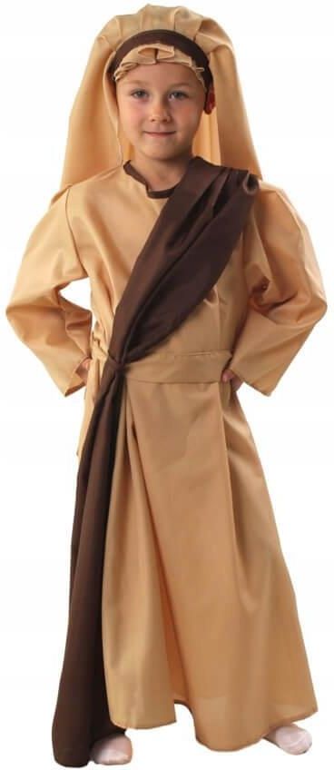 Strój Józef 110/120 to idealne przekształcenie w postać Biblii na każdą okoliczność! Gotowy zestaw, który nada charakter każdej imprezie tematycznej, od jasełek po bale. Dzięki kompletnemu składowi w postaci szaty, paska i nakrycia głowy, przebranie jest gotowe do użycia od razu. Wymiary: Szata: Długość całkowita: 93 cm, Szerokość w klatce piersiowej: 39 cm, Szerokość w pasie: 43 cm, Dolna część szaty: 74 cm, Długość rękawa zewnętrzna: 39 cm, Długość rękawa wewnętrzna: 29 cm, Szerokość rękawa: 16 cm Pasek: Długość: 132 cm Nakrycie głowy: Długość: 74 cm, Szerokość: 69 cm