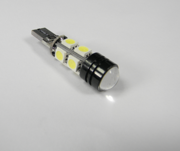 Ilość i typ LED: 8 szt. diod SMD 5050 + 1 szt. diod HIGH POWER LED Rodzaj trzonka: T10 Napięcie zasilania: 12V Pobór mocy : 3,9W +1,5W Barwa światła: biała zimna 6000-6500 (xenon look) Kąt świecenia: 360 stopni Trwałość: 50 000 godzin Efektywność energetyczna: A Certyfikaty: CE, RoHS Wysokość: 45mm Szerokość: 12mm Żarówka postojowa T10W W5W 8LED + 1HP LED Wyposażona jest w system can bus dzięki któremu na komputerze nie będzie pojawiała się informacja o spalonej żarówce co ma miejsce przy innym oświetleniu tego typu. Żarówka charakteryzuje się szerokim zastosowaniem: - światła postojowe - kierunki boczne - oświetlenie drzwi i schowków - oświetlenie wewnętrzne auta - tablice rejestracyjne - kontrolki sygnalizacyjne Żarówka posiada bieguny + i - . Jeśli po podłączeniu nie działa oznacza to że trzeba ją umieścić odwrotnie. Nieprawidłowe podłączenie nie powoduje przepalenia.