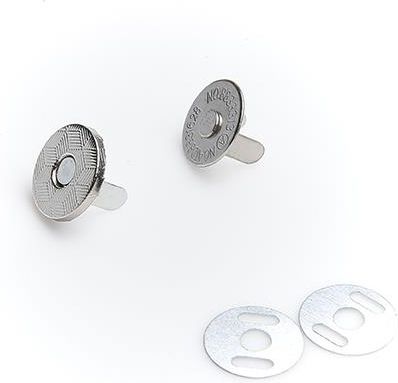 Aukcja dotyczy 10 kompletów zapiecia magnetycznego. Komplet Zawiera: zapięcie żeńskie - 1 szt zapięcie męskie - 1 szt blaszki mocujące - 2 szt Parametry: Kolor: Srebrny Wymiary: 14 mm Mocowanie: na wąsy (zagniatane blaszki) Sugerowana grubość materiału: 1,5 mm Zastosowanie: torebki etui na klucze / torby portfele / plecaki / bagi kosmetyczki odzież mocowanie dwóch materiałów Instrukcja montażu Przygotuj komplet zapięć magnetycznych, śrubokręt lub nożyk, twardy przedmiot, którym zagniesz blaszki - np. młotek lub kombinerki. Nożykiem natnij materiał, przez który przełożysz wąsy-blaszki. Możesz do tego celu użyć płaskiego śrubokręta. Uderzając od góry natniesz materiał akurat na wielkość wąsa-blaszki. Po przełożeniu wąsów-blaszek przez materiał nałóż na nie kółeczko z nacięciami. Kombinerkami, młotkiem lub innym twardym przedmiotem zagnij wąsy-blaszki do środka. Upewnij się że wąsy zostały mocno zagięte, aby zapięcie mocno i pewnie się trzymało materiału. Powtórz kroki 1 - 4 dla drugiej części zapięcia i gotowe!
