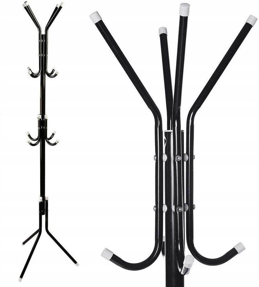 WIESZAK STOJĄCY NA UBRANIA ODZIEŻ PODŁOGOWY Z RAMIONAMI Praktyczny i nowoczesny wieszak, sprawdzi się w dowolnym miejscu: domu, biurze, sklepie czy w salonie fryzjerskim. Konstrukcja wieszaka jest stabilna. Wykonany ze stali malowanej proszkowo. Model ma 8 ramion na górze, w dwóch poziomach oraz 4 ramiona usytuowane w środkowej części konstrukcji. Kąt haków gwarantuje, że zawieszone przedmioty nie zsuwają się. Specjalne osłony montowane na końcu rurek, z których wykonany jest wieszak, pozwalają na bezpieczne wieszanie na nim ubrań, również tych, która pozbawione są pętelek do wieszania na haczykach. Podobne osłony zamontowane są na spodzie nóżek wieszaka, dzięki czemu nie ma ryzyka zniszczenia podłoża. SPECYFIKACJA TECHNICZNA: ✅ Kod produktu: 01769 ✅ Wytrzymała, lekka konstrukcja ✅ 12 ramion w trzech poziomach ✅ Zabezpieczenia przed zsunięciem się ubrań ✅ Zabezpieczenie przed rysowaniem podłogi ✅ Szybki i łatwy montaż DOSTĘPNE KOLORY: Prosimy o wybór koloru. W przypadku braku informacji zostanie wysłany kolor losowy. ✅ Czarny ✅ Biały WYMIARY: ✅ Wysokość: 174cm ✅ Szerokość w podstawie: 41cm ZESTAW ZAWIERA: ☑️ Fabrycznie nowy stojący wieszak do samodzielnego złożenia ☑️ Oryginalne opakowanie