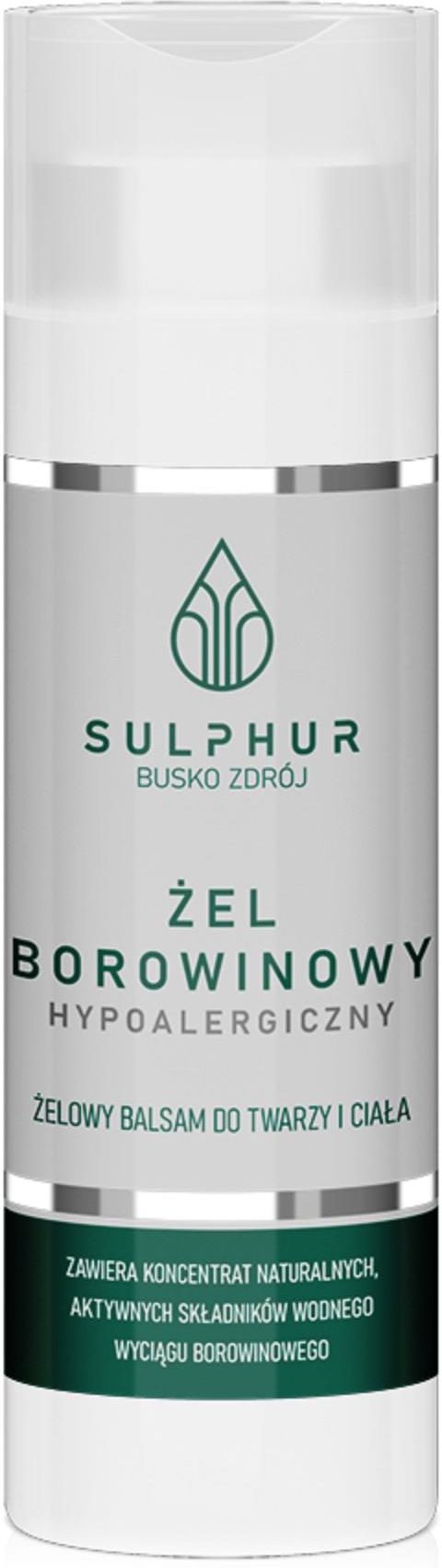 SULPHUR Hypoalergiczny Żel Borowinowy Do Twarzy Ciała Skóry Ujędrnia 200 g Numer katalogowy: 70 Co nieco o produkcie... Sprawdźmy, czy to właśnie jest produkt odpowiedni dla Ciebie? SULPHUR Hypoalergiczny Żel Borowinowy Do Twarzy Ciała Skóry Ujędrnia 200 g⭐ Żel borowinowy hypoalergiczny głęboko nawilża, wygładza oraz zwiększa napięcie i jędrność skóry. Żel jest bardzo dobrze tolerowany przez skórę osób z różnego rodzaju alergią. Wodny wyciąg borowinowy zawarty w preparacie dodatkowo łagodzi stany zapalne skóry. Działanie żelu borowinowego hypoalergicznego związane jest z aktywnymi biologicznie składnikami wodnego wyciągu borowinowego. Zawiera on kwasy humusowe (naturalne antyoksydanty pobudzające produkcję elastyny i kolagenu w skórze), fitohormony, garbniki, jony wapnia i magnezu oraz inne mikroelementy. Borowina to kopalina od zawsze stosowana w kuracjach uzdrowiskowych. Borowiny wpływają także na przemiany białek, węglowodanów, tłuszczów, kwasów nukleinowych, stymulują odnowę tkanek. Udokumentowane są jej właściwości terapeutyczne w chorobach reumatycznych i skóry. Właściwości preparatu głęboko nawilża skórę wyraźnie wygładza, zmniejsza szorstkość skóry zwiększa napięcie i jędrność skóry poprawia i wyrównuje koloryt skóry łagodzi stany zapalne skóry Sposób użycia Żel cienko rozprowadzić na czystą skórę, pozostawić do wchłonięcia, omijać okolice oczu. Do każdego rodzaju skóry ciała i twarzy. A co ze składem? Skład jest najważniejszy! Składniki:⭐ Ingredients (INCI): Aqua; Peat Extract; Methylcellulose; Alcohol; Methylparaben; Menthol; Rosmarinus Officinalis Leaf Oil; Limonene Produkt zawiera zagęszczony, wodny wyciąg borowinowy, olejek rozmarynowy, mentol