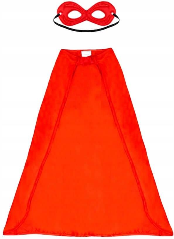 Zestaw Mały bohater Czerwony:peleryna zapinana na rzep i maska z tyłu na gumeczke Wspaniały zestaw dla każdego małego bohatera. Chcesz wcielić się w tajemniczego i nieustraszonego bohatera i zwalczać zbrodnie? Strój idealnie się nada na wspaniałe przyjęcia,zabawę w domu i imprezy w szkole oraz przedszkolu. Wymiary: Długość ok 65cm Szerokość ok 84cm Materiał polyester