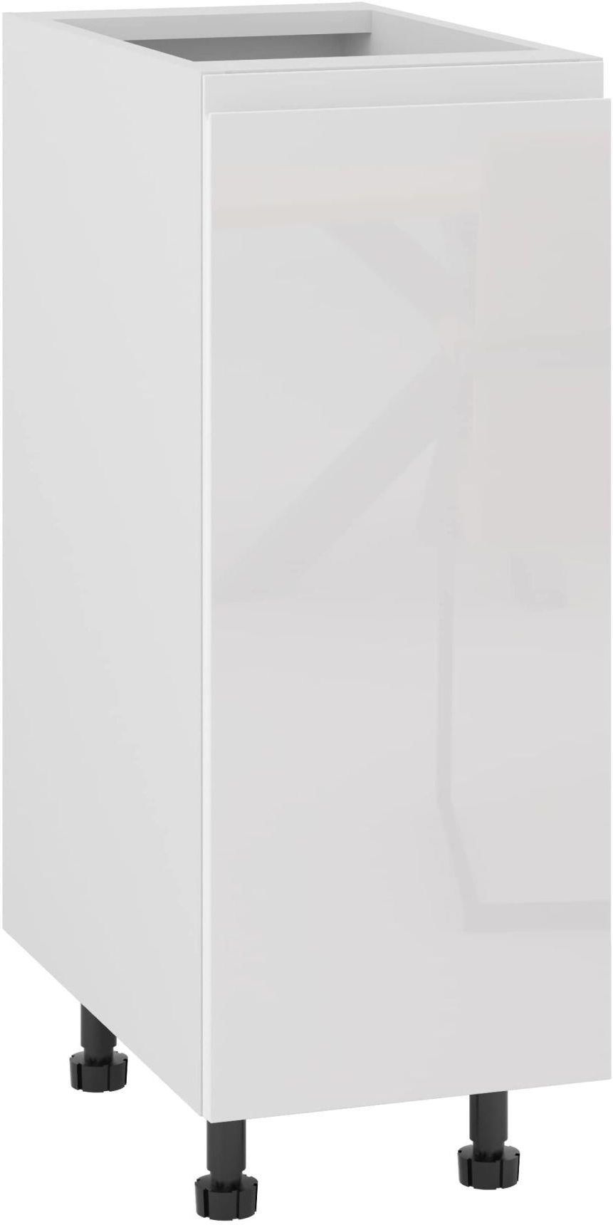 ALBA SZAFKA DOLNA PRAWA D-30 BIAŁY POŁYSK to szafka dolna do kuchni wyposażona w pojedyncze drzwi uchylne prawostronnie. Model mierzy 30 cm szerokości, 82 cm wysokości oraz 53 cm głębokości. Meble kuchenne białe posiadają gładki i połyskujący front, a także frezowane uchwyty, które podkreślają minimalistyczny charakter mebli kuchennych w stylu nowoczesnym. Jasne i połyskujące wykończenie kolekcji kuchni Komfort służy optycznemu powiększeniu wnętrza oraz wizualnej lekkości. Meble kuchenne biały zostały wykonane z płyty MDF akrylowanej oraz płyty laminowanej.