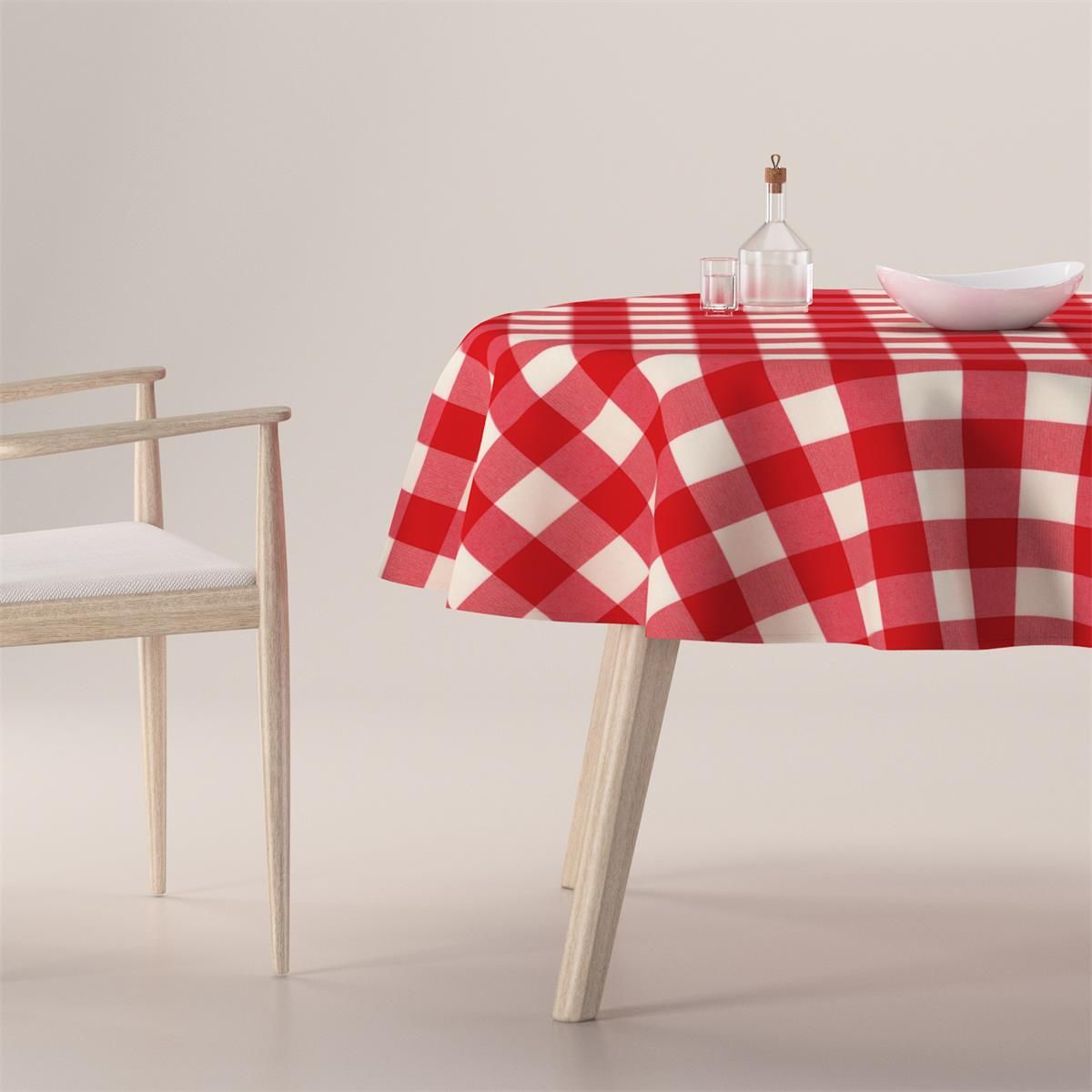 Dekoria Obrus Okrągły Czerwono Biała Krata (5,5X5,5Cm) Quadro 160X160 Cm Złotoryja