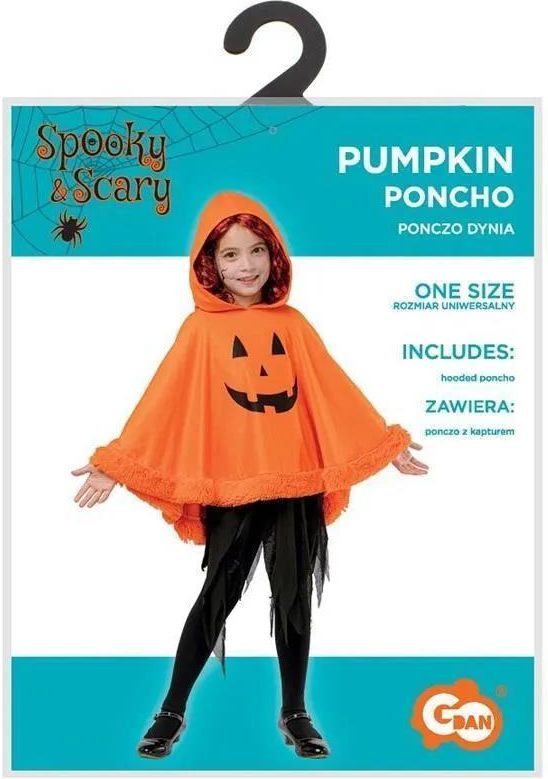 Ponczo dla dzieci z kapturem Dynia, rozm. uniw. W skład stroju wchodzą: ponczo z kapturemRozmiar: uniwersalnyKolor: pomarańczowyMateriał: 100% poliester Numer art. : SL-PUMK EAN : 5902973193817