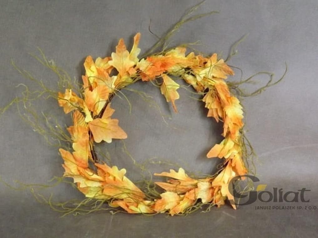 Dekoracyjny wianek z jesiennych liści o średnicy 38 cm to piękna ozdoba, która wprowadzi do wnętrza ciepły, sezonowy akcent. Stworzony z realistycznych liści w odcieniach typowych dla jesieni, doskonale nadaje się do powieszenia na drzwiach wejściowych, w salonie lub przedpokoju, stanowiąc zachwycający element przyciągający wzrok. Ten uniwersalny wianek może również służyć jako efektowny stroik do dużej świecy, tworząc przytulną atmosferę i nadając charakter jesiennej aranżacji. Wykonany z wysokiej jakości materiałów, jest odporny na uszkodzenia i trwały, dzięki czemu można go używać przez wiele sezonów, ciesząc się jego niezmiennym urokiem. To idealny dodatek dla osób ceniących klimatyczne dekoracje, które podkreślają styl i przytulność wnętrza w okresie jesiennym.