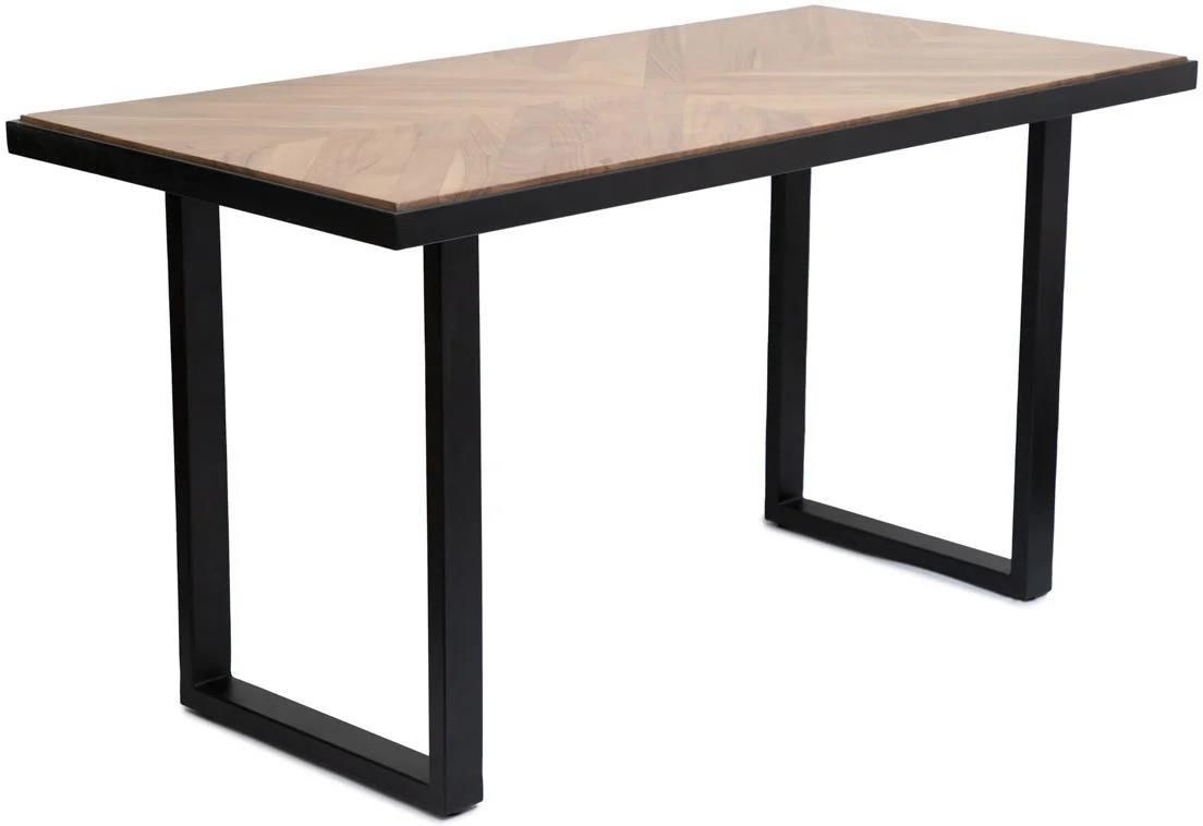 Stabilna konstrukcja i trwałe materiały Stylowe zestawienie akacjowego drewna i metalu Blat z pięknym wzorem w jodełkę Idealny jako stół reprezentacyjny i do pracy Stół do jadalni z drewna i metalu 140x70 cm Stół NATTMAL doskonale sprawdzi się w roli centrum rodzinnych i towarzyskich spotkań. Będzie wspaniałym dopełnieniem wystroju salonu lub jadalni, choć możesz ustawić go również w gabinecie, gdzie stworzy komfortowe warunki do pracy. Blat stołu ozdobiliśmy wzorem w jodełkę, którą otoczyliśmy metalową ramą. Dzięki temu stół wnosi do pomieszczenia ciepły akcent, a jednocześnie prezentuje się bardzo stylowo i nowocześnie. Jest to miejsce, które wręcz zaprasza do wspólnego spędzenia czasu przy pysznych posiłkach i miłych rozmowach. Przeznaczenie Wymiary stołu NATTMAL pozwalają na komfortowe użytkowanie przez 4-6 osób, co czyni go znakomitym wyborem do jadalni lub salonu. Chętnie usiądziesz przy nim wraz z domownikami podczas obiadu i zaprosisz do niego przyjaciółkę, która wpadła z wizytą na kawę. Możesz ustawić go również w kuchni, gdzie stworzy dodatkową przestrzeń do przygotowywania posiłków i przekąsek, oraz w gabinecie, gdzie pozwoli wygodnie usiąść podczas pracy. Rewelacyjnie wkomponuje się w przestrzenie nowoczesne, loftowe, industrialne i eklektyczne. Materiał Konstrukcję stołu wykonaliśmy z metalu, a blat z akacjowego drewna. Zastosowane materiały cechują się trwałością i zapewniają meblowi stabilność. Dzięki gładkiej powierzchni i prostym kształtom stół jest łatwy do utrzymania w czystości. Informacje dodatkowe Produkt do samodzielnego montażu. Wymiary blatu: 140 x 70 cm Wysokość: 76 cm