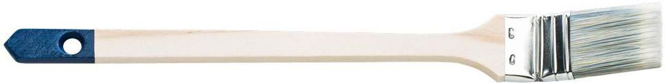 Pędzel kątowy to narzędzie służące do malowania w trudno dostępnych miejscach. Poliestrowe włosie pozwala na malowanie głównie farbami akrylowymi. Pędzlem bez problemu możemy malować za kaloryferem, lub za meblami ze względu na długość rączki. Poliestrowe włosie, drewniany trzonek oraz skuwka ze stali nierdzewnej decydują o jego trwałości, zapewniając Ci przy tym komfort podczas pracy.