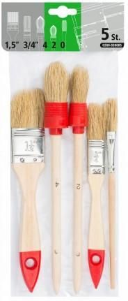 Zestaw pędzli malarskich 5 szt Pędzle malarskie do malowania ścian są praktycznym narzędziem, które zapewnia precyzję i kontrolę podczas malowania, a także są wygodne w użyciu i łatwe do czyszczenia. Zestaw pędzli można wykorzystać zarówno podczas prac remontowych, jak i drobnych renowacji. Zestaw zawiera pędzle płaskie - 1/2" + 3/4"+1,5" okrągłe - 20mm + 25mm Zalety ⚠️Łatwość aplikacji: Pędzle malarskie są stosunkowo proste w użyciu i umożliwiają precyzyjne malowanie na różnych powierzchniach, w tym na ścianach. Są łatwe do trzymania i kontrolowania, co ułatwia precyzyjne nanoszenie farby na ściany. ⚠️Precyzja: Dobrej jakości pędzle malarskie pozwalają na precyzyjne malowanie krawędzi, narożników i detali na ścianach. Dzięki nim można uzyskać dokładne i czyste linie, a także kontrolować grubość farby na powierzchni. ⚠️Trwałość: Pędzle malarskie wykonane z wysokiej jakości materiałów, takich jak nylonowe włosie, mogą być wytrzymałe i wytrzymać wiele malowań. Przy odpowiedniej pielęgnacji mogą posłużyć przez długi czas. ⚠️Wybór rozmiarów i kształtów: Na rynku dostępne są pędzle malarskie o różnych rozmiarach i kształtach, co pozwala dostosować je do konkretnych obszarów do malowania. Na przykład, pędzle o większych rozmiarach mogą być idealne do pokrywania większych powierzchni, podczas gdy mniejsze pędzle są przydatne do detali. ⚠️Łatwość czyszczenia: Pędzle malarskie można łatwo wyczyścić po użyciu. Wystarczy je umyć w wodzie z mydłem lub specjalnym środkiem czyszczącym dla pędzli malarskich. Odpowiednie czyszczenie pozwala zachować pędzle w dobrym stanie i gotowości do kolejnego użycia. ⚠️Kontrola nad natężeniem farby: Pędzle malarskie pozwalają kontrolować ilość farby na włosiu, co jest istotne przy malowaniu ścian. Dzięki temu można osiągnąć równomierne i gładkie wykończenie, unikając nadmiaru farby. ⚠️Koszt: Pędzle malarskie są zazwyczaj tańsze niż inne narzędzia malarskie, takie jak wałki malarskie. Są bardziej ekonomicznym rozwiązaniem, szczególnie jeśli masz do wykonania niewielkie malowanie ścian w domu. ⚠️Wielozadaniowość: Pędzle malarskie mogą być używane do różnych zadań podczas remontu domu. Mogą być stosowane zarówno do malowania ścian, jak i do malowania drzwi, okien, ram okiennych, mebli czy elementów dekoracyjnych.