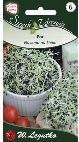 Kiełki to cenne źródło wielu witamin, aminokwasów, składników odżywczych i minerałów, które warto włączyć do swojego codziennego menu. Dodatkowo świetnie nadają się do sałatek, kanapek - możliwości są nieograniczone!! Kiełki pora bogate są w witaminy A, B, C i E, oraz wapń, żelazo, jod i miedź mają lekko ostry smak. Spożywanie kiełek pora znacznie obniża poziom złego cholesterolu oraz wspomaga układ odpornościowy. Produkcja na kiełkownicy: Wypłucz nasiona i namocz je przez 2-3 godzin w ciepłej, przegotowanej wodzie. To ważne, aby nasiona były gotowe do kiełkowania! Równomiernie rozłóż nasiona na siatce kiełkownicy. Upewnij się, że są dobrze rozłożone, aby zapewnić im swobodny rozwój. Dodaj wodę do dolnego poziomu siatki i regularnie uzupełniaj oraz wymieniaj ją. Woda jest niezbędna dla kiełków, aby rosły zdrowo i pełne życia. Po około 10-14 dniach, Twoje kruche i soczyste kiełki będą gotowe do spożycia! Dodaj je do sałatek, kanapek, zup lub swoich ulubionych dań. Produkcja w słoiku: Wypłucz nasiona i wsyp je do czystego słoika. Nasiona powinny być dobrze oczyszczone przed rozpoczęciem procesu. Zalej nasiona wodą i pozostaw je na kilka godzin. Pamiętaj, żeby odlać wodę, przepłukać nasiona i nakryć słoik gazą. Ustaw słoik w ciepłym, nasłonecznionym miejscu, denkiem do góry pod kątem 40-45°. To jest kluczowe dla prawidłowego wzrostu kiełków. Przepłukuj i zlewaj wodę dwa razy dziennie. Zapewnia to świeżość i nawilżenie dla kiełków. Po zaledwie 10-14 dniach, Twoje świeże i chrupiące kiełki będą gotowe do spożycia!