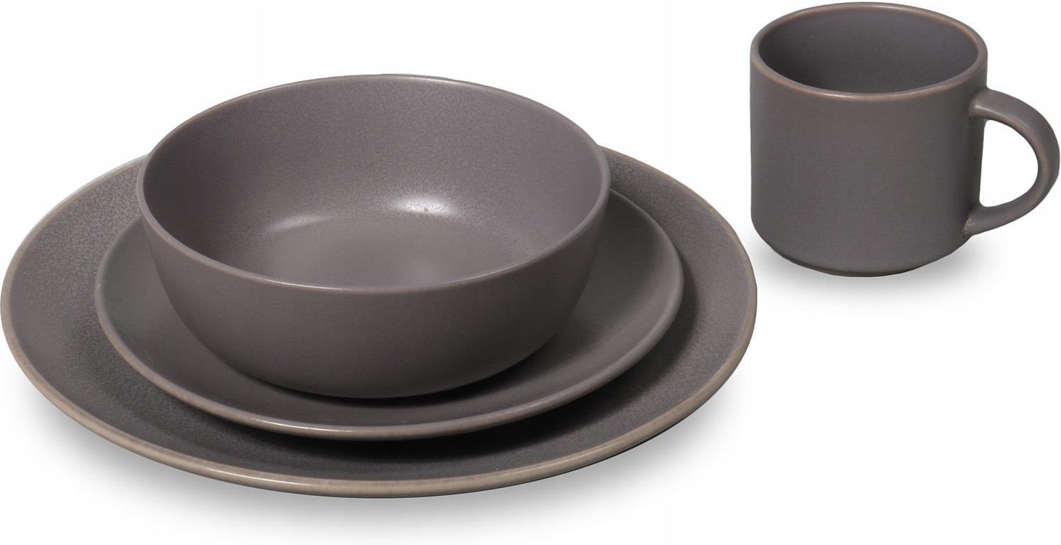 Szara zastawa stołowa to doskonały wybór, który doda elegancji i nowoczesności Twojej jadalni. Jej stonowany szary kolor wprowadza wyjątkowy charakter, harmonijnie komponując się z różnorodnymi aranżacjami wnętrz, od klasycznych po bardziej minimalistyczne. Zestaw jest praktyczny i funkcjonalny, ponieważ można go bezpiecznie myć w zmywarce oraz używać w kuchence mikrofalowej, co znacznie ułatwia codzienną obsługę. W skład zestawu wchodzą: duży talerz o średnicy 28,5 cm i wysokości 2 cm, mały talerz o średnicy 22,5 cm i wysokości 3 cm, miseczka o średnicy 17,5 cm i wysokości 6,5 cm oraz kubek o średnicy 9,5 cm i wysokości 8,5 cm. Ta stylowa zastawa z pewnością podkreśli każdą chwilę przy wspólnym stole, dodając jej wyjątkowego klimatu.