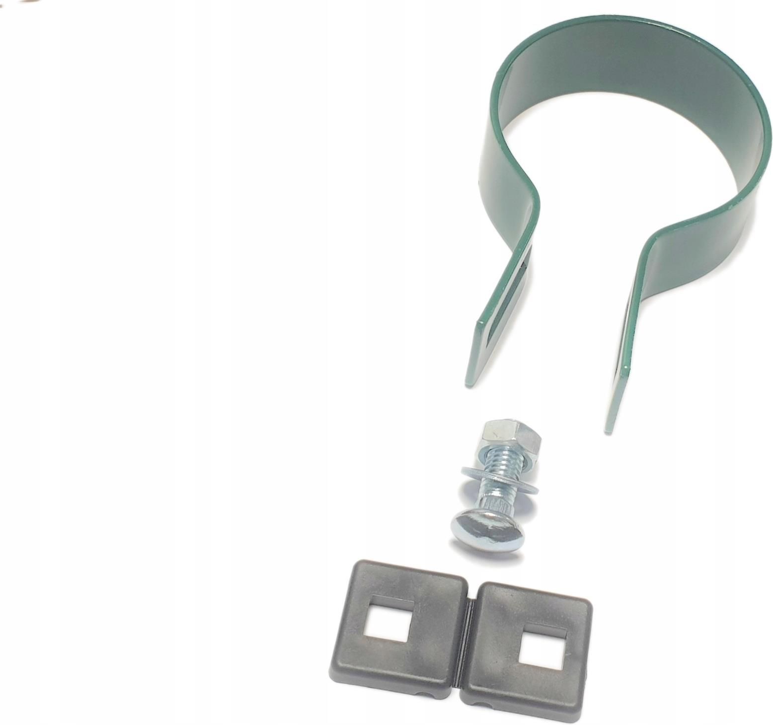 OBEJMA KOŃCOWA / POCZĄTKOWA / STARTOWA NA SŁUPKI OKRĄGŁE FI 42 Obejmy dostosowane do montażu paneli na słupki okrągłe Ocynkowane ogniwo KOMPLETNA OBEJMA SKŁADAJĄCA SIĘ Z KSIĄŻECZKI PLASTIKOWEJ ( DYSTANSU fi 5 mm) ŚRUBY OCYNKOWANEJ M8x25mm NAKRĘTKI PODKŁADKI W wiadomości do sprzedającego prosimy o podanie do jakiego fi drutu Kolor zielony RAL 6005 Sam metalowy element obejmy dostępny na innych aukcjach. Na naszych innych aukcjach dostępne inne kolory