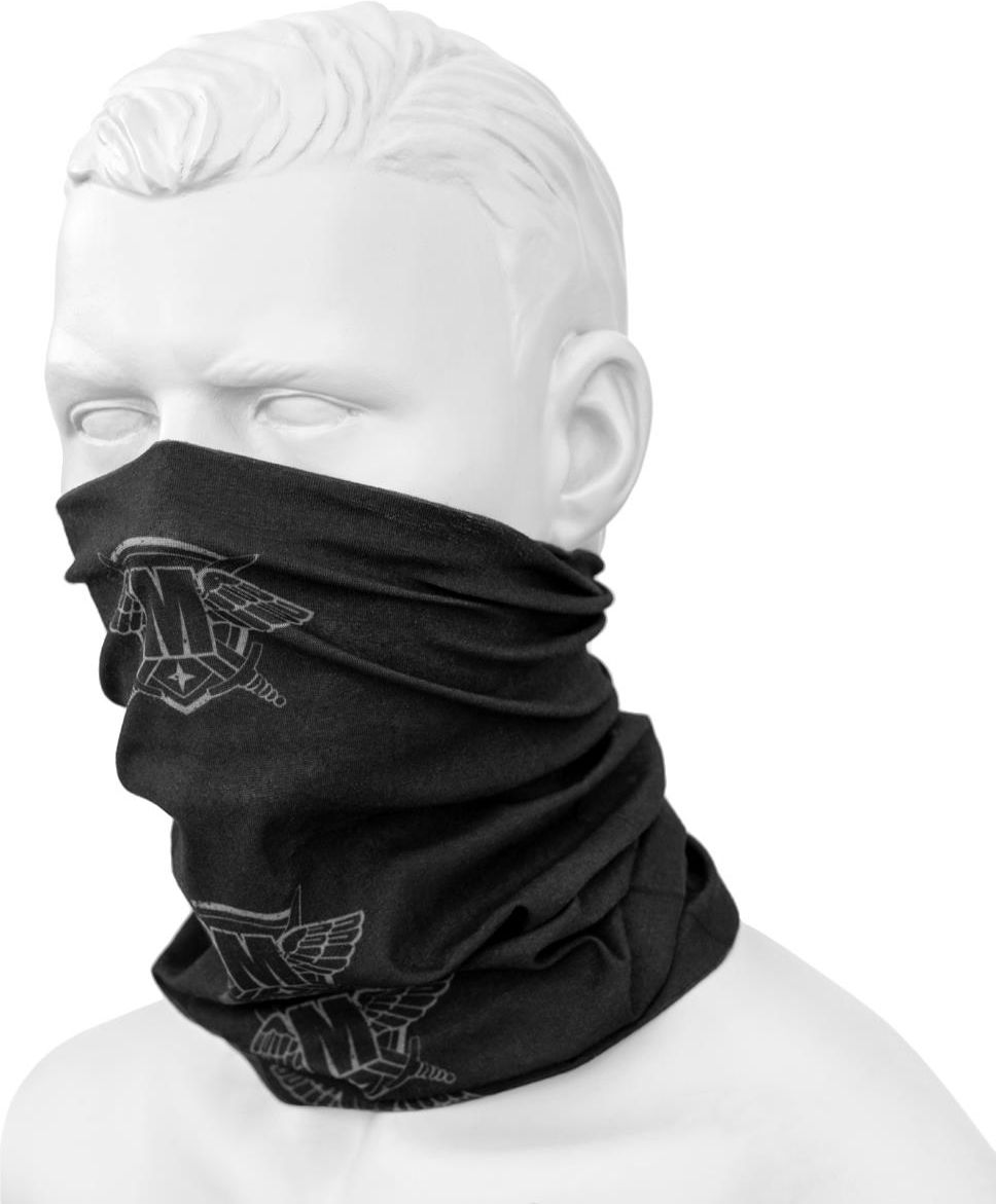 Chusta ochronna Militaria.pl Wielofunkcyjna chusta ochronna wykonana z przewiewnej i elastycznej tkaniny poliestrowej w formie bezszwowego rękawa. Zastosowany materiał gwarantuje wysoki stopień przepuszczalności powietrza oraz absorbowania wilgoci, dzięki czemu jest przyjazna dla skóry. Chusta zapewnia ochronę przed wiatrem, kurzem, słońcem, zimne i potem. Chusta noszona na twarzy zmniejsza ryzyko zakażenia chorobami przenoszonymi drogą kropelkową, np. COVID-19. Po złożeniu zajmuje bardzo mało miejsca i nie ciąży w kieszeni. Można ją nosić na wiele sposobów np. jako kominiarkę, chustę chroniącą dolną część twarzy, opaskę, czapkę, szal. Dane techniczne Rozmiar: uniwersalny Kolor: czarny Wymiary: 50 x 24 cm Producent: TM