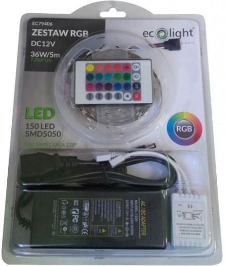 Eco Light Zestaw Taśma Led Rgb 12V Z Zasilaczem I Sterownikiem 5mb Ip20 5050 Ec79406 Żmigród