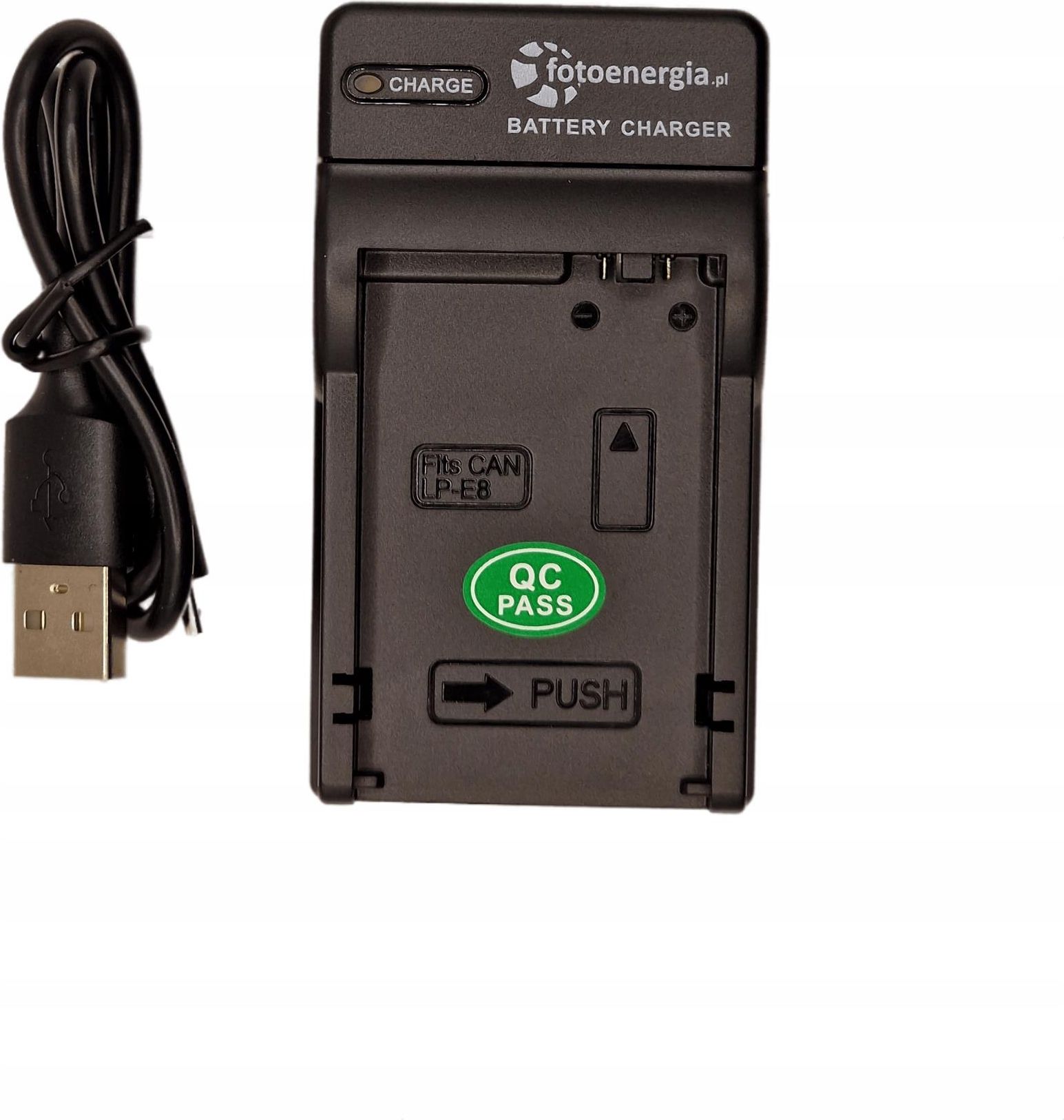 Ładowarka do CANON LP-E8, LP-E8-M, LPE8 Procesorowa ładowarka impulsowa dedykowana do akumulatorów CANON LP-E8, LP-E8-M, LPE8 Używanych w aparatach: Współpracuje z oryginalnymi akumulatorkami, jak i zamiennikami Prąd ładowania to aż 500mA W komplecie przewód USB zasilanie: 5 V; 1 A Możliwe jest ładowanie z laptopa, ładowarki od smartfona, power banka oraz w samochodzie. Procesorowa ładowarka marki fotoenergia.pl jest bardzo szybka i wygodna. Umożliwia ładowanie dedykowanych akumulatorków . Działa w pełni automatycznie, sygnalizuje stan pracy i jest w pełni bezpieczna. Kolor czerwony - trwa ładowanie, Kolor zielony - podłączenie do zasilania / ładowanie zakończone BEZPIECZEŃSTWO automatycznie rozpoczyna i kończy ładowanie - nie trzeba jej pilnować, rozpoznaje polaryzację, posiada zabezpieczenia przed przegrzaniem lub przeładowaniem akumulatora, bardzo niska awaryjność, certyfikat Rohs, Ce, gwarancja 12 miesięcy. SZYBKOŚĆ I WYGODA ładowanie jest sterowane mikroprocesorem, co zapewnia długą pracę akumulatora, długość ładowania wynosi od 1,5 do 2,5 godziny, w zależności od pojemności akumulatora diody sygnalizujące ładowanie/naładowanie, ładuje wysokim (ale bezpiecznym) prądem impulsowym 500mA, akumulatory o dowolnej pojemności (nawet 10 000mAh), trwała i estetyczna, bardzo lekka - waży ok. 70g. wymiary ładowarki: 4,8 x 8,4 x 2,2 cm W zestawie znajdują się: ładowarka kabel USB oryginalne opakowanie Ładuje akumulatory: CANON LP-E8, LP-E8-M, LPE8 Używanych w aparatach: CANON: EOS 550D, 600D, 650D, 700D, Rebel T2i, Rebel T3i i Kiss X4
