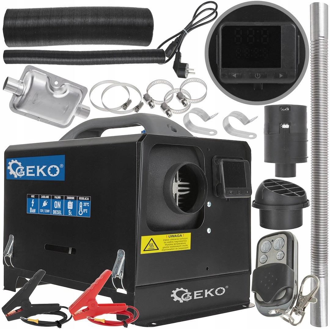 NAGRZEWNICA SAMOCHODOWA – OGRZEWANIE POSTOJOWE NA OLEJ NAPĘDOWY 12V/230V 8KW GEKO G80456 Nagrzewnica samochodowa / ogrzewanie postojowe na olej napędowy 230V/12V 8kW ze zintegrowanym zbiornikiem paliwa Prezentujemy nagrzewnicę postojową o mocy 8kW, zaprojektowaną, aby zapewnić maksymalny komfort cieplny w każdej podróży. Dzięki zintegrowanemu zbiornikowi paliwa oraz nowoczesnemu designowi, urządzenie jest nie tylko wydajne, ale także wygodne w transporcie i montażu. Nagrzewnica została wyposażona w panel sterowania, który umożliwia precyzyjne ustawienie parametrów pracy, a także pilot zdalnego sterowania, zapewniający komfort użytkowania bez konieczności bezpośredniego dostępu do urządzenia. Zasilana olejem napędowym zgodnym z normą EN590, ta nagrzewnica o dużej mocy grzewczej jest idealnym rozwiązaniem do ogrzewania przestrzeni w kabinie pojazdu, w łodzi, przyczepie kempingowej czy maszynach rolniczych. Jej wydajność, wynosząca do 55 m3/h przepływu gorącego powietrza, oraz niski poziom emisji CO2, czynią ją doskonałym wyborem do zastosowań w trudnych warunkach pogodowych i terenowych. Specyfikacja techniczna Napięcie zasilania: 230V / 12V Paliwo: Olej napędowy zgodny z EN590 Moc grzewcza: 8 kW Przepływ gorącego powietrza: 55 m3/h Zużycie paliwa: 0.35 - 0.78 L/godzinę Pobór mocy: 20-45 W Temperatura pracy/przechowywania: od -30? do 55? Wysokość robocza nad poziomem morza: do 4300 m Zawartość CO2 w spalinach: <10% Wymiary nagrzewnicy: 25 x 37 x 26,5 cm Waga nagrzewnicy: 7,0 kg Waga z akcesoriami: 7,5 kg Kluczowe zalety produktu Potężna moc grzewcza 8kW – doskonale sprawdza się w dużych przestrzeniach, zapewniając szybkie i efektywne ogrzewanie. Zintegrowany zbiornik paliwa – zwiększa wygodę montażu i eksploatacji, minimalizując konieczność korzystania z dodatkowych zasobników. Łatwy w obsłudze panel sterowania – intuicyjny wyświetlacz oraz przejrzyste przyciski pozwalają na łatwe dostosowanie ustawień. Pilot zdalnego sterowania – umożliwia pełną kontrolę nad urządzeniem bez konieczności wychodzenia z pojazdu. Ekonomiczne zużycie paliwa – od 0.35 do 0.78 L/godzinę, co pozwala na długie użytkowanie bez częstego tankowania. Solidna konstrukcja – trwała obudowa i kompaktowy rozmiar gwarantują niezawodność nawet w ekstremalnych warunkach. Zakres zastosowania nagrzewnicy Pojazdy mechaniczne wszystkich typów – idealna do samochodów osobowych, ciężarówek, dostawczych, jak i pojazdów terenowych. Maszyny budowlane i rolnicze – zapewnia komfortową temperaturę w kabinach roboczych podczas zimowych prac terenowych. Łodzie, jachty i statki – efektywnie ogrzewa kabiny oraz przestrzenie mieszkalne na jednostkach pływających. Samochody kempingowe – umożliwia ciepłe, wygodne warunki podczas wypoczynku na świeżym powietrzu, nawet w chłodnych klimatach. Dozwolone zastosowania Ogrzewanie szyb, co ułatwia szybkie ich rozmrożenie i poprawia widoczność. Ogrzewanie kabin kierowców, przestrzeni ładunkowych, a także zapewnienie komfortu cieplnego w przyczepach kempingowych i jachtach. W zestawie znajdziesz Nagrzewnicę powietrza ze zintegrowanym zbiornikiem paliwa Pilot zdalnego sterowania Kompaktowy panel sterowania Wszystkie niezbędne akcesoria montażowe, w tym przewody, obejmy oraz elementy mocujące Nagrzewnica samochodowa / ogrzewanie postojowe 230V/12V 8kW ze zintegrowanym zbiornikiem paliwa to potężne urządzenie, które zapewnia komfort cieplny wszędzie tam, gdzie tego potrzebujesz. Idealne rozwiązanie do ogrzewania pojazdów mechanicznych, maszyn budowlanych, jednostek pływających oraz samochodów kempingowych. Dzięki mocy 8kW, wbudowanemu zbiornikowi paliwa i intuicyjnemu sterowaniu, jest to niezastąpiony element wyposażenia dla każdego, kto ceni sobie komfort i niezależność cieplną, nawet w najtrudniejszych warunkach.