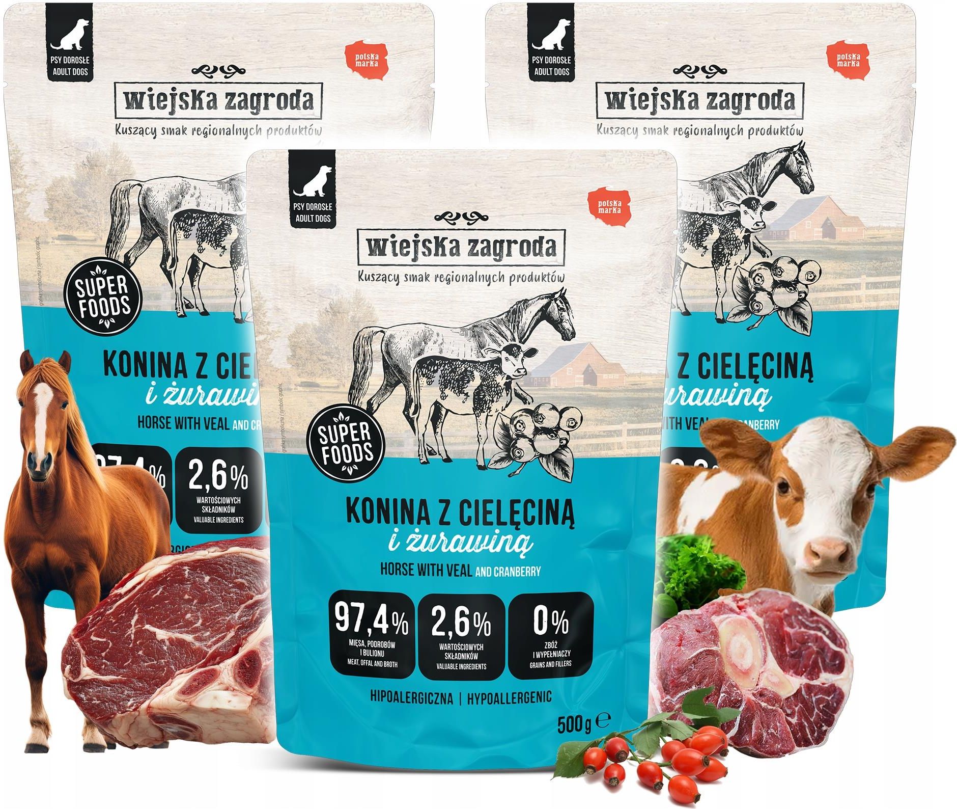 Wiejska Zagroda Koń Z Cielęciną Mokra Karma Dla Psa Saszetki Konina 3X500G Żmigród