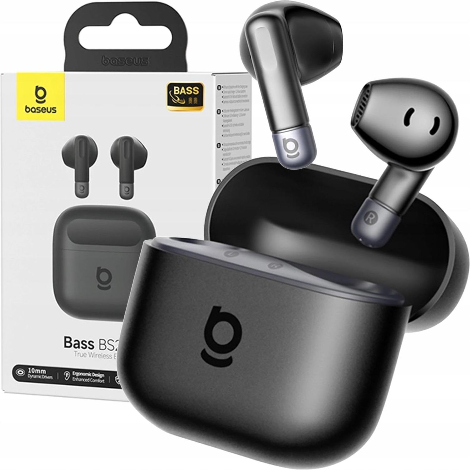 SŁUCHAWKI BEZPRZEWODOWE BASEUS Bass BS2 Lite BLUETOOTH 6.0 TWS ENC SBC AAC 1293276941 199499 Słuchawki Baseus Bass BS2 Lite TWS to wygodne rozwiązanie do codziennego słuchania muzyki i rozmów – dynamiczne brzmienie, długi czas pracy i odporność na warunki sprawiają, że możesz korzystać z nich bez ograniczeń. Mocny bas i czysty dźwięk Duże 10-milimetrowe przetworniki w połączeniu z technologią SuperBass zapewniają głębokie, dynamiczne basy oraz wyraźne brzmienie – idealne do muzyki, filmów, gier i podcastów. Nawet do 40 godzin słuchania Do ok. 7 godzin pracy na jednym ładowaniu słuchawek oraz do 40 godzin z etui ładującym. Funkcja szybkiego ładowania USB-C pozwala uzyskać ok. 1,5 godziny odtwarzania już po 10 minutach ładowania. Nowoczesny Bluetooth 6.0 + multipoint Szybkie parowanie, stabilne połączenie i niskie opóźnienia. Funkcja multipoint umożliwia jednoczesne połączenie z dwoma urządzeniami (np. telefon i laptop) i wygodne przełączanie się między nimi bez ponownego parowania. Wyraźne rozmowy w każdych warunkach Dwa wbudowane mikrofony z technologią ENC (Environmental Noise Cancellation) skutecznie redukują hałas otoczenia, dzięki czemu Twój głos pozostaje wyraźny nawet w głośnym otoczeniu. Lekka konstrukcja semi-in-ear + odporność IP55 Słuchawki bez gumek, które delikatnie opierają się w uchu – zapewniają wysoki komfort nawet podczas długiego noszenia i nie powodują efektu „zatkanego ucha”. Klasa IP55 chroni je przed potem, kurzem i zachlapaniami. Specyfikacja techniczna Marka: Baseus Model: Baseus Bass BS2 Lite Typ słuchawek: bezprzewodowe TWS Konstrukcja: semi-in-ear Średnica przetwornika: 10 mm Zakres częstotliwości: 20 Hz – 20 kHz Wersja Bluetooth: 6.0 Zasięg Bluetooth: do 10 m Mikrofony: 2 Redukcja hałasu: ENC (do rozmów) Czas pracy słuchawek: do ok. 7 h Czas pracy z etui: do 40 h Szybkie ładowanie: ok. 10 min = do 1,5 h odtwarzania Port ładowania: USB-C Sterowanie: dotykowe Asystent głosowy: obsługiwany Odporność: IP55 Waga jednej słuchawki: ok. 3,3 g Kolor: czarny Zawartość zestawu słuchawki Baseus Bass BS2 Lite etui ładujące instrukcja obsługi Czysty dźwięk rozmów Dwa mikrofony oraz redukcja szumów ENC pomagają lepiej zbierać głos i ograniczać dźwięki otoczenia. Stabilne połączenie bezprzewodowe Bluetooth 6.0 umożliwia szybkie łączenie słuchawek z urządzeniami i ogranicza ryzyko przerw w odtwarzaniu. Wsparcie popularnych kodeków audio (SBC / AAC) Słuchawki obsługują standardowe kodeki Bluetooth, w tym AAC, co przekłada się na lepszą jakość dźwięku i stabilną synchronizację audio – szczególnie na urządzeniach z Androidem i iOS. Idealne do codziennych zastosowań Baseus Bass BS2 Lite sprawdzą się zarówno podczas pracy zdalnej, spacerów, treningu, jak i oglądania filmów czy słuchania podcastów. Lekka konstrukcja i stabilne połączenie pozwalają korzystać z nich przez cały dzień. Tryb mono – używaj jednej lub obu słuchawek Każda słuchawka działa niezależnie, dzięki czemu możesz korzystać tylko z jednej – idealne rozwiązanie do rozmów telefonicznych lub w pracy. Naturalne brzmienie bez efektu „zatkanego ucha” Konstrukcja typu semi-in-ear nie izoluje całkowicie od otoczenia, co zwiększa komfort noszenia i bezpieczeństwo podczas użytkowania na zewnątrz. Słuchawki Baseus Bass BS2 Lite TWS - czarne --- Słuchawki Baseus Bass BS2 Lite to lekkie i wygodne słuchawki bezprzewodowe typu True Wireless, stworzone z myślą o codziennym użytkowaniu – w pracy, w domu i w ruchu. Dzięki dużym przetwornikom 10 mm oraz technologii SuperBass oferują dynamiczne, pełne brzmienie z wyraźnie podkreślonymi niskimi tonami, co jest rzadkością w konstrukcjach typu semi-in-ear. Nowoczesna łączność Bluetooth 6.0 gwarantuje stabilne połączenie i szybkie parowanie z urządzeniami mobilnymi. Obsługa funkcji multipoint pozwala jednocześnie korzystać z dwóch urządzeń, np. smartfona i laptopa, co znacząco zwiększa wygodę codziennego użytkowania. Słuchawki obsługują popularne kodeki audio SBC i AAC, zapewniając dobrą jakość dźwięku i płynną synchronizację audio – szczególnie na urządzeniach z systemem Android oraz iOS. Dzięki intuicyjnemu sterowaniu dotykowemu możesz sterować muzyką, odbierać połączenia, zmieniać utwory oraz aktywować asystenta głosowego bez konieczności sięgania po telefon. Każda słuchawka działa niezależnie (tryb mono), co umożliwia korzystanie tylko z jednej – idealne rozwiązanie do rozmów telefonicznych lub pracy. Niska waga (ok. 3,3 g) oraz ergonomiczna konstrukcja sprawiają, że słuchawki są niemal niewyczuwalne w uchu nawet po wielu godzinach noszenia. FAQ – Baseus Bass BS2 Lite Ile godzin działają słuchawki? Do 7 godzin na jednym ładowaniu. Ile łącznie z etui? Do 40 godzin odtwarzania. Czy mają szybkie ładowanie? Tak – 10 minut ładowania zapewnia ok. 1,5 godziny słuchania. Czy mają dobry bas? Tak – duże 10 mm przetworniki oraz technologia SuperBass. Czy nadają się do rozmów? Tak – 2 mikrofony z technologią ENC zapewniają wyraźny głos. Czy są wodoodporne? Tak – klasa IP55, odporne na pot i zachlapania. Czy można używać jednej słuchawki? Tak – każda słuchawka działa niezależnie (tryb mono). Jaki Bluetooth? Bluetooth 6.0 – szybkie parowanie i stabilne połączenie. Czy są wygodne? Tak – lekkie (ok. 3,3 g) i ergonomiczna konstrukcja semi-in-ear. Czy działają z Android i iPhone? Tak – pełna kompatybilność z Androidem i iOS. O marce Baseus Baseus to jeden z czołowych na świecie projektantów i twórców akcesoriów GSM, a także różnego rodzaju elektroniki użytkowej. Produkty tej marki charakteryzują się wysoką jakością wykonania, zaś do ich produkcji używane są najnowsze podzespoły oraz innowacyjne rozwiązania technologiczne. Nic więc dziwnego, że logo Baseus stało się symbolem zaufania, na