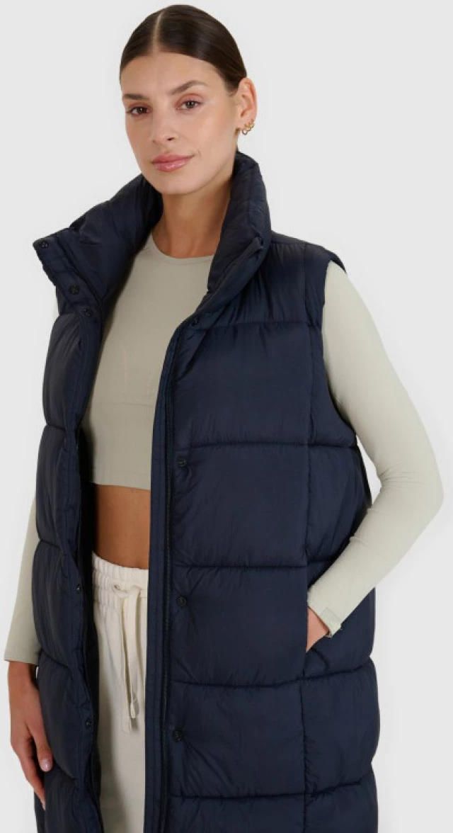 Bezrękawnik puchowy długi damski 4F o optymalnej gramaturze wypełnienia będzie funkcjonalnym rozwiązaniem podczas codziennych i sportowych aktywności w chłodniejsze dni. Umiarkowana objętość oferuje odpowiednią izolację przed chłodem bez dodatkowego obciążenia. Pikowanie w widoczne kwadraty przyczynia się do uzyskania dobrej izolacji termicznej i równomiernego rozłożenia puchu w komorach. Standardowy krój o długości sięgającej okolic kolan naturalnie układa się na sylwetce. Kamizelkę wyprodukowano z wytrzymałej, odpornej na rozdarcia tkaniny rip stop. Wypełnienie z puchu syntetycznego pomaga utrzymać optymalną temperaturę całego tułowia. Puch syntetyczny jest trwalszy i łatwiejszy w utrzymaniu niż puch naturalny. Nawet przy kontakcie z wilgocią, zachowuje swoje właściwości izolacyjne przez dłuższy czas oraz o wiele szybciej schnie. Dodatkowo nie wymaga skomplikowanego procesu prania i suszenia. Hydrofobowa powłoka impregnacyjna pokrywa zewnętrzną warstwę materiału i zabezpiecza ją przed wchłonięciem wody. Powłoka sprawia, że wilgoć skrapla się na powierzchni tkaniny lub dzianiny, po czym swobodnie po niej spływa. Dwukierunkowy zamek główny uzupełniono o wewnętrzną i zewnętrzną plisę przeciwwiatrową stanowiącą dodatkową barierę od zimna. Dwie, otwarte kieszenie boczne zapewnią dodatkową przestrzeń dla przechowywania ulubionych drobiazgów czy ogrzania zmarzniętych dłoni. Wysoki kołnierz tworzy dodatkową osłonę. Długa kamizelka z gładką, poliestrową podszewką i dołem bez regulacji sprawdzi się w zróżnicowanych warunkach atmosferycznych, dbając o komfort cieplny i pełną swobodę ruchów. Dane techniczne:· Materiał zewnętrzny: 100% poliamid· Podszewka: 100% poliamid· Wypełnienie: 100% poliester (puch syntetyczny)· Regularny krój wygodnie dopasowuje się do sylwetki· Długość do kolan· Pikowanie w kwadraty· Poliestrowa, gładka podszewka· Kamizelka przeznaczona na chłodniejsze dni· Hydrofobowa powłoka materiału zewnętrznego ogranicza wchłanianie wilgoci· Wysoki kołnierz· 2 otwarte kieszenie boczne· Dwukierunkowy zamek główny z wewnętrzną i zewnętrzną plisą przeciwwiatrową· Dół bez regulacji· Wykonana w całości z wytrzymałej, odpornej na rozdarcia tkaniny rip stop· Wypełnienie z puchu syntetycznego zapewnia odpowiednie właściwości izolacyjne nawet w wilgotnych warunkach