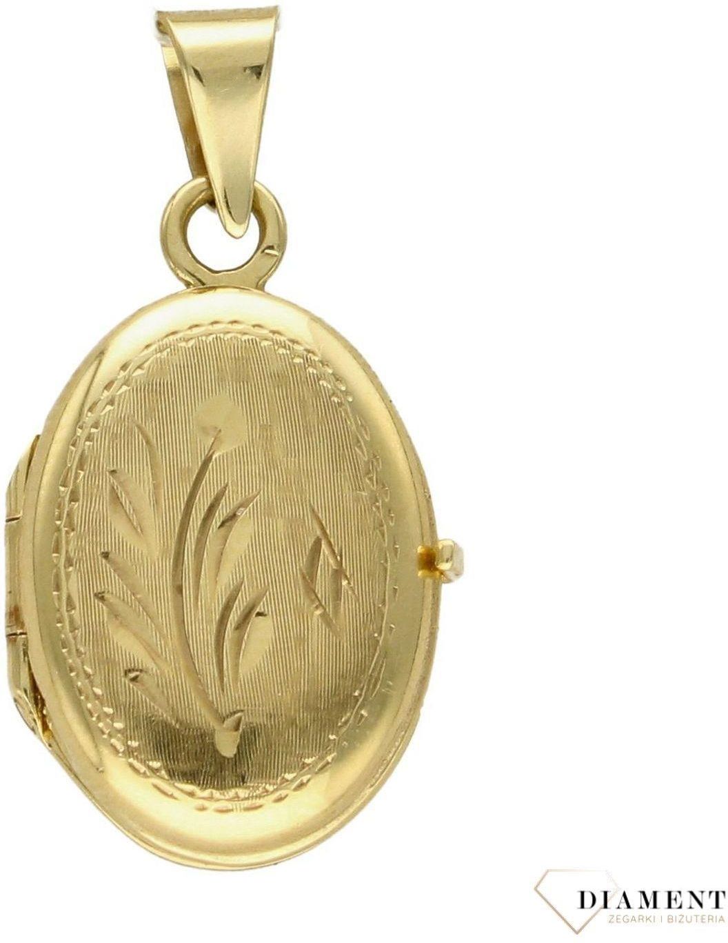 Otwierana zawieszka owalna zdobiona liściem marki Diament wykonana ze złota próby 585. Piękny sekretnik w którym można schować fotografię bliskiej osoby lub liścik z wyznaniem. To doskonały pomysł na prezent dla ukochanej osoby. Zawieszka ma długość 3 cm z oczkiem 3 cm, szerokość 1,5 cm, waga około 4,26 gram. Na zawieszce można wykonać indywidualny grawer, dzięki któremu zawieszka będzie świetnym prezentem, długo zapamiętanym. Złota biżuteria dostępna w naszym sklepie to połączenie klasy, stylu oraz elegancji. Starannie wyselekcjonowane dodatki zachwycają wysoką jakością użytych materiałów, dbałością o każdy, nawet najmniejszy szczegół oraz niebywałą precyzją wykonania. Stworzone z myślą o każdej kobiecie, doskonale prezentują się w każdych warunkach. Zapraszamy do zapoznania się z pozostałą częścią naszej wyjątkowej kolekcji. Sprawdź pozostałą ofertę! > Złota biżuteria Stwórz swój wymarzony komplet! > Złote naszyjniki > Złote bransoletki > Złote pierścionki > Złote kolczyki Nasz sklep internetowy z biżuterią dla kobiet jest autoryzowanym sprzedawcą najwyższej jakości złota w Polsce. Cała kolekcja biżuterii Diament zakupiona w naszym sklepie posiada 2 letnią gwarancję i zapakowane są w oryginalne opakowanie.