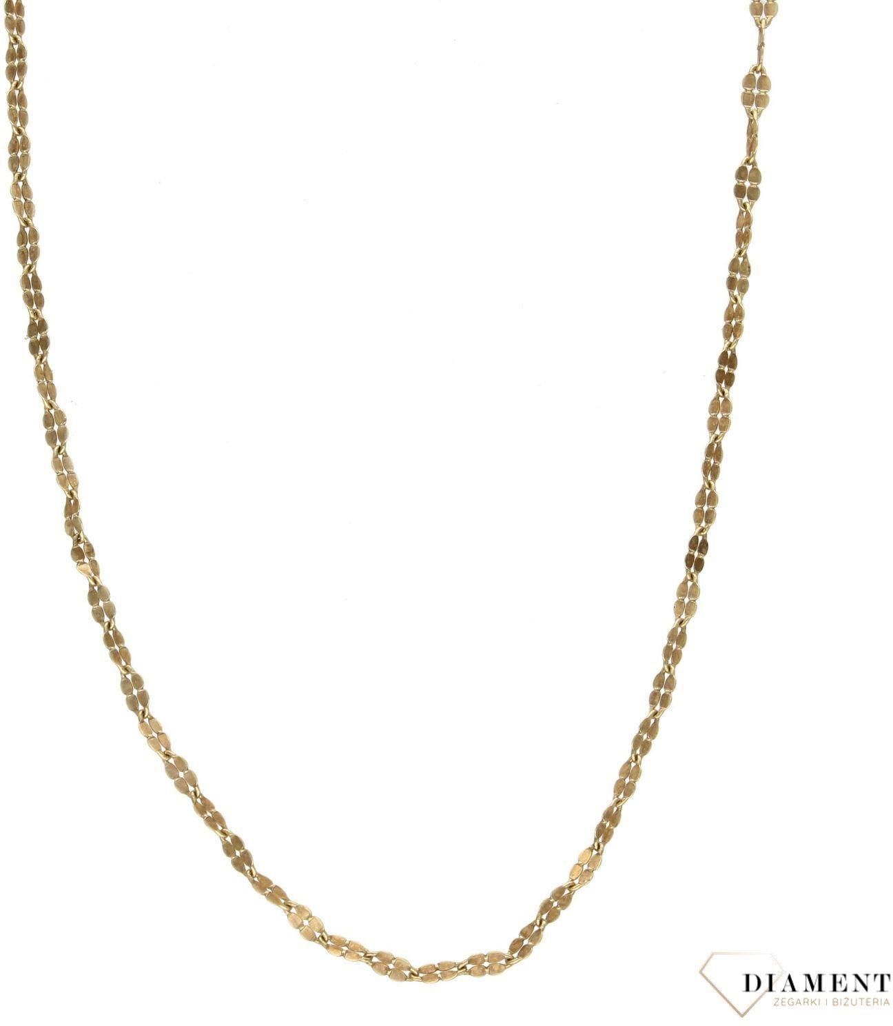Klasyczny i uniwersalny łańcuszek wykonany z żółtego złota próby 585 o wadze około 1,49 g. Łańcuszki to uniwersalne dodatki, które sprawdzają się na każdą okazję i dla kobiet w każdym wieku. Złoty łańcuszek jest uniwersalnym dodatkiem również dla mężczyzny. Piękny grawer na łańcuszku dodaje uroku i blasku. Wykonany z największą starannością i dbałością o każdy szczegół. Biżuterię można zestawić z innymi dodatkami dostępnymi w naszej ofercie, kolczykami, wisiorkiem lub innymi łańcuszkami. Uniwersalna biżuteria, która sprawdzi się jako niezwykle ponadczasowy dodatek do każdej stylizacji. Złota biżuteria dostępna w naszym sklepie to połączenie klasy, stylu oraz elegancji. Starannie wyselekcjonowane dodatki zachwycają wysoką jakością użytych materiałów, dbałością o każdy, nawet najmniejszy szczegół oraz niebywałą precyzją wykonania. Stworzone z myślą o każdej kobiecie, doskonale prezentują się w każdych warunkach. Zapraszamy do zapoznania się z pozostałą częścią naszej wyjątkowej kolekcji. Sprawdź pozostałe łańcuszki! > Złote łańcuszki Stwórz komplet! > Złote zawieszki > Złote bransoletki > Złote naszyjnik > Złote kolczyki > Złote pierścionki Nasz sklep internetowy ze złotą biżuterią Diament jest autoryzowanym dystrybutorem marki. Cała kolekcja złotej biżuterii Diament zakupiona w naszym sklepie posiadają 2 letnią gwarancję i zapakowane są w oryginalne opakowanie.