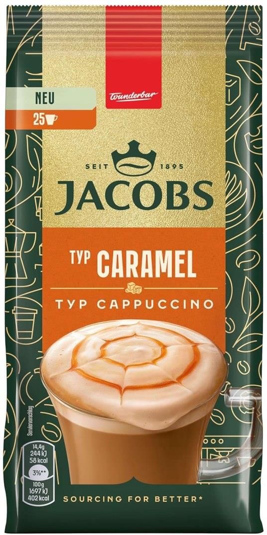 Kawa rozpuszczalna Jacobs Cappuccino Caramel łączy w sobie łagodny smak cappuccino ze słodką nutą karmelu, tworząc filiżankę kawy, której nie można się oprzeć. Ten produkt to idealny wybór na chwile relaksu, od porannej przyjemności po popołudniowy relaks. Kawa rozpuszczalna Jacobs Cappuccino Caramel jest nie tylko łatwa w przygotowaniu, ale również zachowuje pełnię mlecznego i karmelowego smaku. Opakowanie 360 ​​g wystarcza na około 25 filiżanek, dzięki czemu możesz cieszyć się nią wygodnie i ekonomicznie w domu lub w biurze. Rodzaj kawy: Cappuccino instant Waga: 360 g (~25 filiżanek) Intensywność: Lekka do średniej, odpowiednia na każdą porę dnia Smak: Słodki karmel w harmonii z pełnym aromatem kawy Aromat: Bogaty, przyjemny, z nutą ciepła Kwasowość: Niska, z lekko słodkim posmakiem Konsystencja: Delikatna mleczna pianka, która uprzyjemnia każdy łyk Przygotowanie Wsyp 3-4 łyżeczki kawy do filiżanki, zalej 150 ml gorącej wody (80-85°C) i dobrze wymieszaj, aż powstanie delikatna pianka. Można dodać cukier lub mleko do smaku.