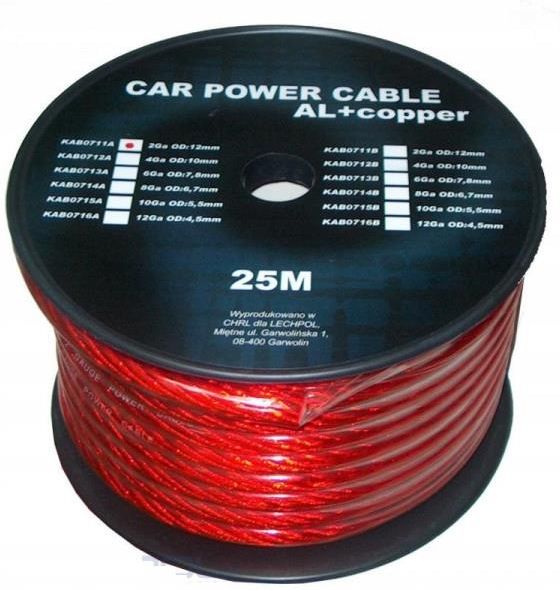 Kabel Samochodowy 2GA 12MM Miedź Aluminium 25M Żnin