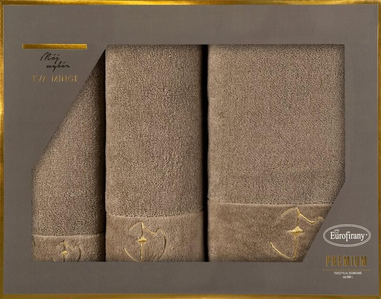 Komplet ręczników BAWEŁNIANYCH kąpielowych 3 sztuki Eva Minge GAJA prezent ^^ Zestaw prezentowy - idealny podarunek dla bliskich^^ Modna Kolorystyka - elegancki kolor pasujący do każdego wnętrza łazienki^^ Miękki Dotyk - delikatny dla skóry nawet po wielokrotnym użytkowaniu Komplet Ręczników Eva Minga Gaja – Synonim Ekskluzywnej Łazienki Odkryj nowy wymiar luksusu z kompletem ręczników Eva Minga Gaja, stworzonym z myślą o najbardziej wymagających. Każdy ręcznik z tej kolekcji to połączenie wysokiej jakości materiałów, elegancji i funkcjonalności, sprawiając, że każda chwila spędzona w łazience staje się wyjątkowym doświadczeniem. Atuty kompletu ręczników Eva Minga Gaja Wysokiej Klasy Materiał: Zapewniający wyjątkową miękkość i chłonność, idealny na co dzień. Eleganckie Wykończenie: Subtelne, złote hafty dodające szyku i ekskluzywnego charakteru. Trwałość Koloru: Głębokie odcienie utrzymują swoją barwę nawet po wielokrotnym praniu. Uniwersalne Rozmiary: W komplecie znajdziesz ręczniki w rozmiarach dostosowanych do różnych potrzeb - 30x50 (1szt.), 50x90 (1szt.), 70x140 (1szt.) Prestiżowa Kolekcja: Sygnowana przez znaną projektantkę, kolekcja Gaja jest wyznacznikiem trendów i dobrego smaku. Nadaj swojej łazience nutę luksusu i zapewnij sobie codzienną przyjemność użytkowania dzięki komplecie ręczników Eva Minga Gaja. Wybierz komplet ręczników Eva Minga Gaja i ciesz się trwałością, komfortem oraz niezmienną elegancją każdego dnia. Przepis konserwacji prać w temperaturze do 40 stopni nie bielić nie chlorować można suszyć mechanicznie prasować w temperaturze do 150 stopni Komplet Ręczników 3 szt. Eva Minge GAJA Beż Marka: Eurofirany Kolor: Odcienie beżu Gramatura: 550 g/m2