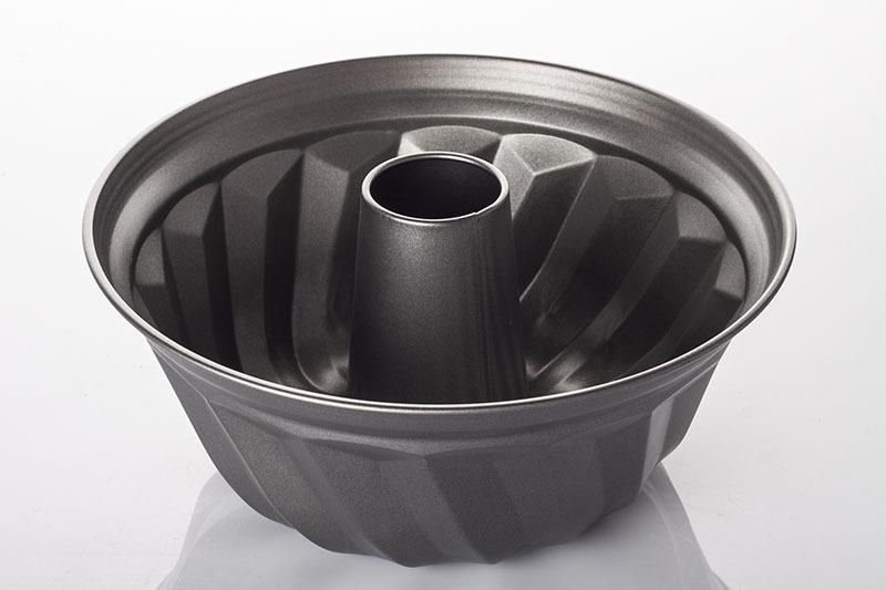 MR-1100-25 Okrągła forma do pieczenia babki 25 cm • forma do pieczenia babki / ciasta z kominem • średnica: 25 cm • wysokość: 11 cm • materiał wykonania: stal węglowa • można używać w temperaturze do 230°c • powłoka non stick zabezpieczająca przed