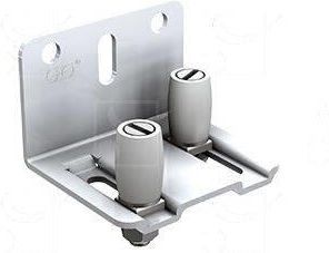 Regulowany prowadnik dolny do przykręcenia. Dedykowany do szyn 25x17 / 30x30 mm Wysokość całkowita 43 mm. Średnica rolki Ø13,5 mm Masa 0,12 kg/szt. Kątownik - stal malowana proszkowo Rolki - nylon.