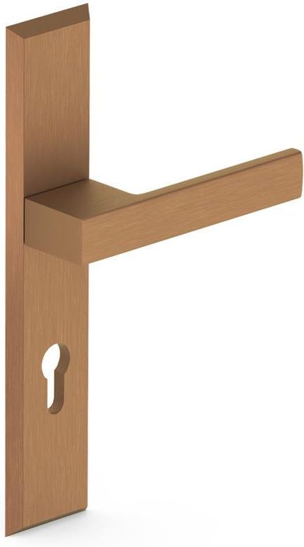 Klamka drzwiowa zewnętrzna na długim szyldzie 72 mm - Total Producent: Metal-bud Rodzaj szyldu: długi szyld Materiał: aluminium Kolor: patyna Typ przebicia : na wkładkę Rozmiar przebicia: 72 mm Zastosowanie:do drzwi zewnętrznych OPIS PRODUKTU Klamka drzwiowa Total charakteryzuje się prostotą i uniwersalnym stylem. Jest ona wykonana z aluminium oraz jest pokryta powłoką anodowaną, która zabezpiecza ją przed szkodliwymi czynnikami atmosferyczymi. Podwójny docisk imbusowy ułatwia i stabilizuje montaż klamki oraz ma wpływ na długi czas eksploatacji produktu. Klamki oraz szyldu nie można odkręcić od strony zewnętrznej, co gwarantuje bezpieczeństwo. Rozmieszczone uniwersalnie otwory montażowe umożliwiają montaż zestawu z większością drzwi zewnętrznych. Montaż klamek jest bardzo prosty i intuicyjny. W JAKI SPOSÓB ZMIERZYĆ ROZMIAR PRZEBICIA KLAMKI? Klamki drzwiowe na długim szyldzie posiadają rozmiar przebicia, który określa odległość od środka trzpienia obrotowego klamki do środka otworu na klucz, na wkładkę lub blokadę WC. Najpopularniejszym na polskim rynku rozmiarem jest rozstaw 72 mm. Rozmiar ten stosowany jest przez wszystkich wiodących producentów drzwi wewnętrznych na polskim rynku. Model klamek Total jest uniwersalny w konfiguraci prawej i lewej. Nie trzeba określać strony drzwi podczas zakupu. Maksymalna grubość drzwi zewnętrznych do których można zamontować klamkę Total korzystając z zestawu montażowego to 74 mm. Grubość szyldu wynosi 8 mm. Klamka może być zastosowana w drzwiach z zamkiem listwowym. W ZESTAWIE komplet klamek (2szt) do jednych drzwi elementy montażowe